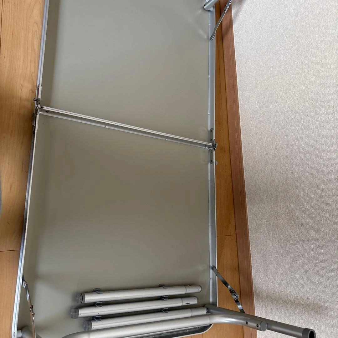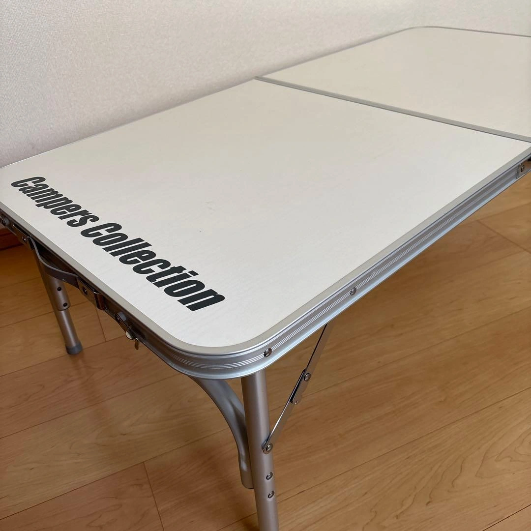 軽量で持ち運びに便利な折りたたみテーブルです。 2回ほど使ったのみですが、外での使用だった事と、子供がインクをつけた跡が少し残っています(写真3枚目)。お譲りする際はできるだけ綺麗に致します。 ブランド: Campers Collection 色: ホワイト 素材: アルミニウム タイプ: 折りたたみテーブル 状態: 小さな傷あり ご覧いただきありがとうございます。 よろしくお願いします!