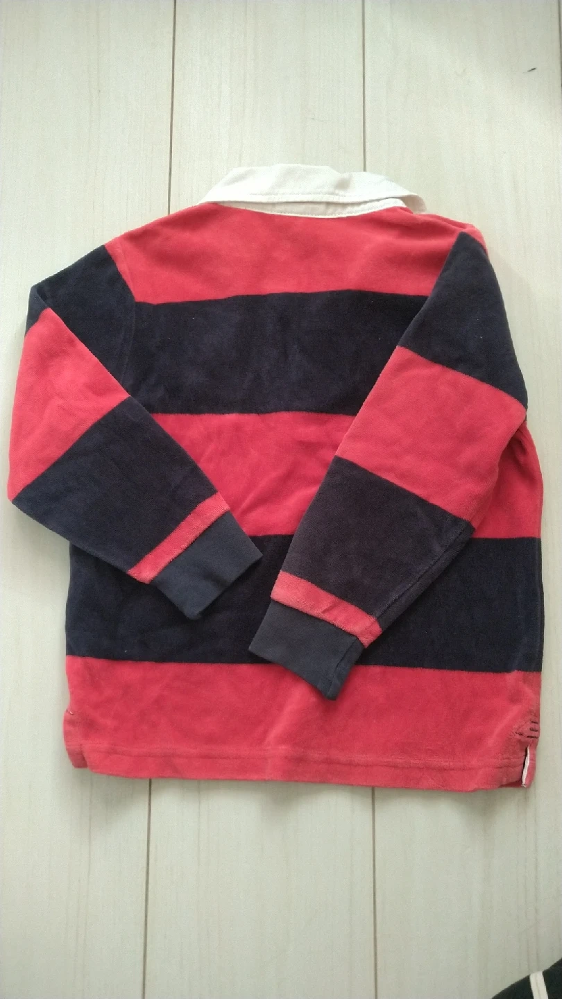 カンタベリーの長袖ラガーシャツです。 薄めのベロア生地で着心地が良いです。 ・ブランド:カンタベリー ・サイズ:110 ・色:赤、紺のボーダー ・使用感あり(2枚目赤丸の箇所、わずかにシミがあります。) その他は目立った汚れやほつれ、傷はありませんが、中古品であることご了承いただける方、ぜひご検討ください。 他にも子供服を出品しておりますので、まとめ買いご相談ください。