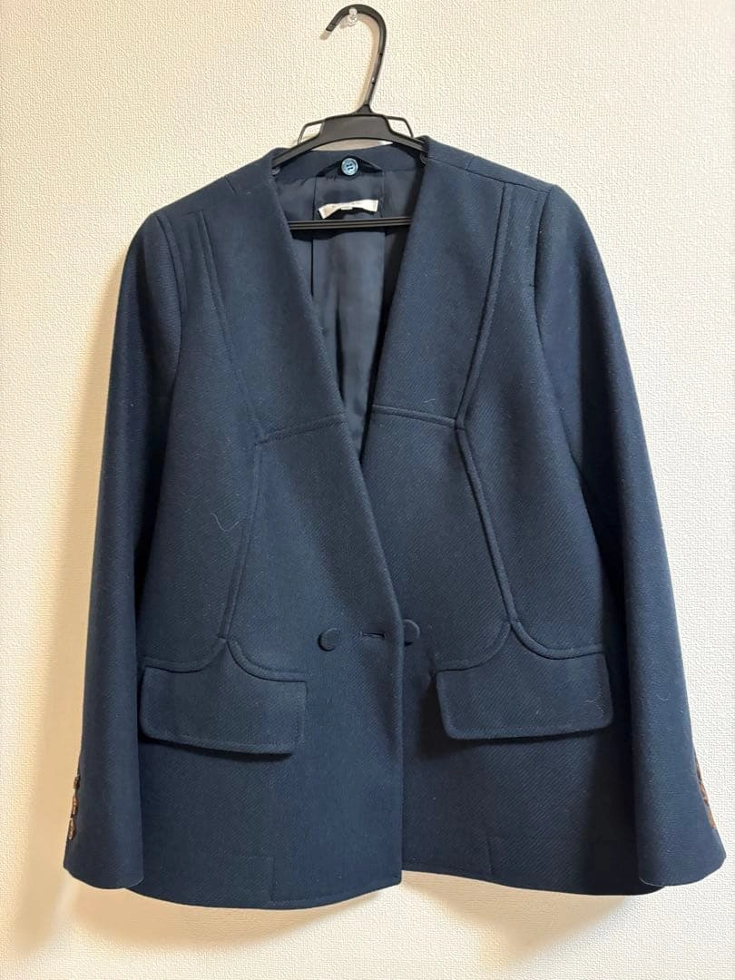 パリで数年前に購入しましたカルヴェンのジャケットです。 さすがオートクチュールブランドでカットがよく、ポケット周辺の縫いや後ろにファスナーがついていたりととてもモード感のあるものです。 着るととても素敵なのですが、自転車移動が多く、使う機会がないので出品いたします。 サイズは36、色は濃紺です。 襟にボタンで取り外しができる、白っぽいファーがついてます。 着用回数は少ないですが、中古品、自宅保管にご了承いただける方お願いいたします。