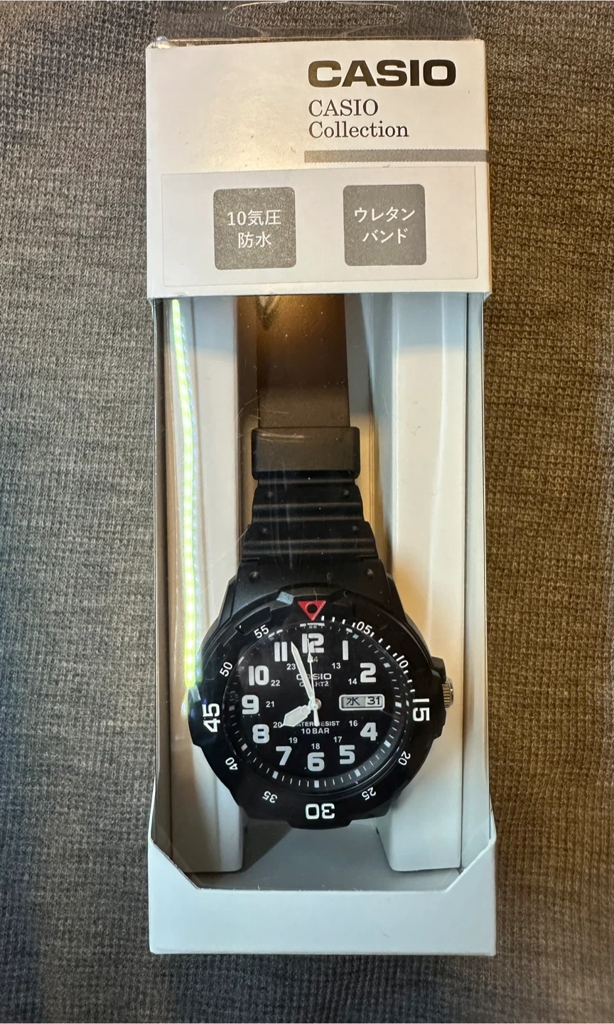 チープカシオの中でも異色の存在感を放つ人気モデルの未開封新品です。 CASIO MRW-200HJ-1BJH 基本情報 発売年月 2021年7月 価格 メーカー希望小売価格 ¥3,300(税込) ケースサイズ(縦×横×厚さ)icon-question 47.9 × 44.6 × 11.6 mm 質量icon-question 39 g ケース・ベゼル材質 樹脂・樹脂ガラス バンド 樹脂バンド 防水性 10気圧防水 使用電源 SR626SW×1個 電池寿命 約3年 ※画像4・5枚目は着用イメージです。 受渡しにつきましては当方の指定場所でのお取引となりますが、都内及び近郊であれば別途経費(500円)加算にてご希望の場所までのお届けも可能です。