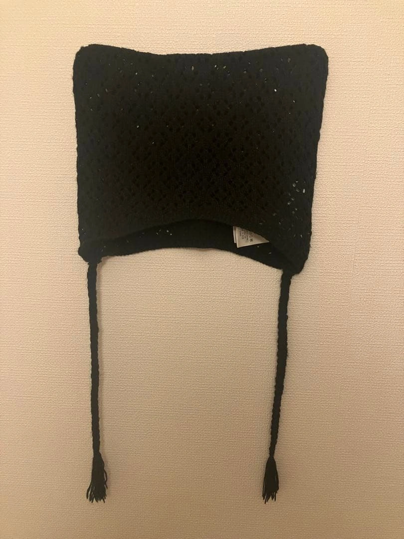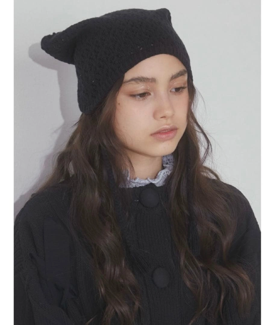 試着のみです。 トレンドのねこ耳ボンネットです。Stylingをぱっと華やかに仕上げてくれるitemです。 本体は柄編みで仕上げてあります。さらっとした素材感なので、晩夏から取り入れやすくなっています。 お友達との双子コーデにも。 素材···ニット カラー···ブラック