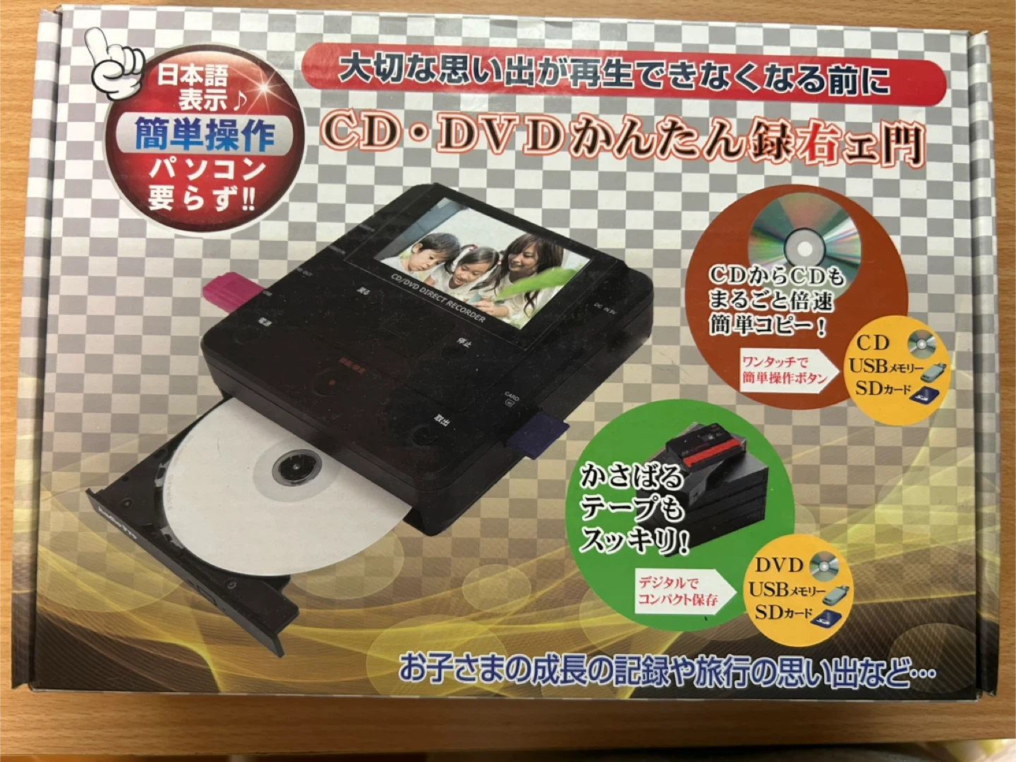 CD・DVDダビング機です。 【情報】 商品名:CD・DVD かんたん録右ェ門 付属品:本体、取扱説明書、AC電源アダプター 【状態】 未使用ですが中古品です。 ご不明点があればお気軽にお尋ねください。