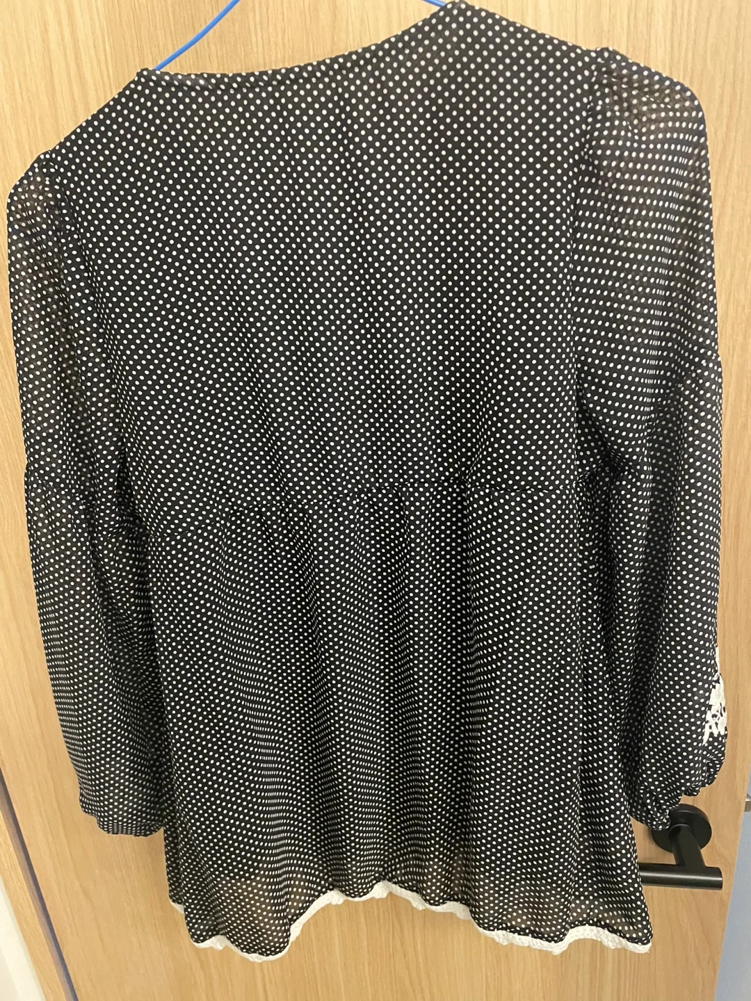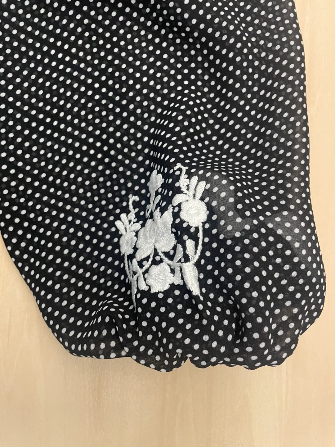 セシルマクビーの水玉ブラウスです。 ・ブランド:セシルマクビー ・色:黒、白ドット ・サイズ:M ・状態:使用感少なめ ご不明点があればお気軽にご連絡ください。