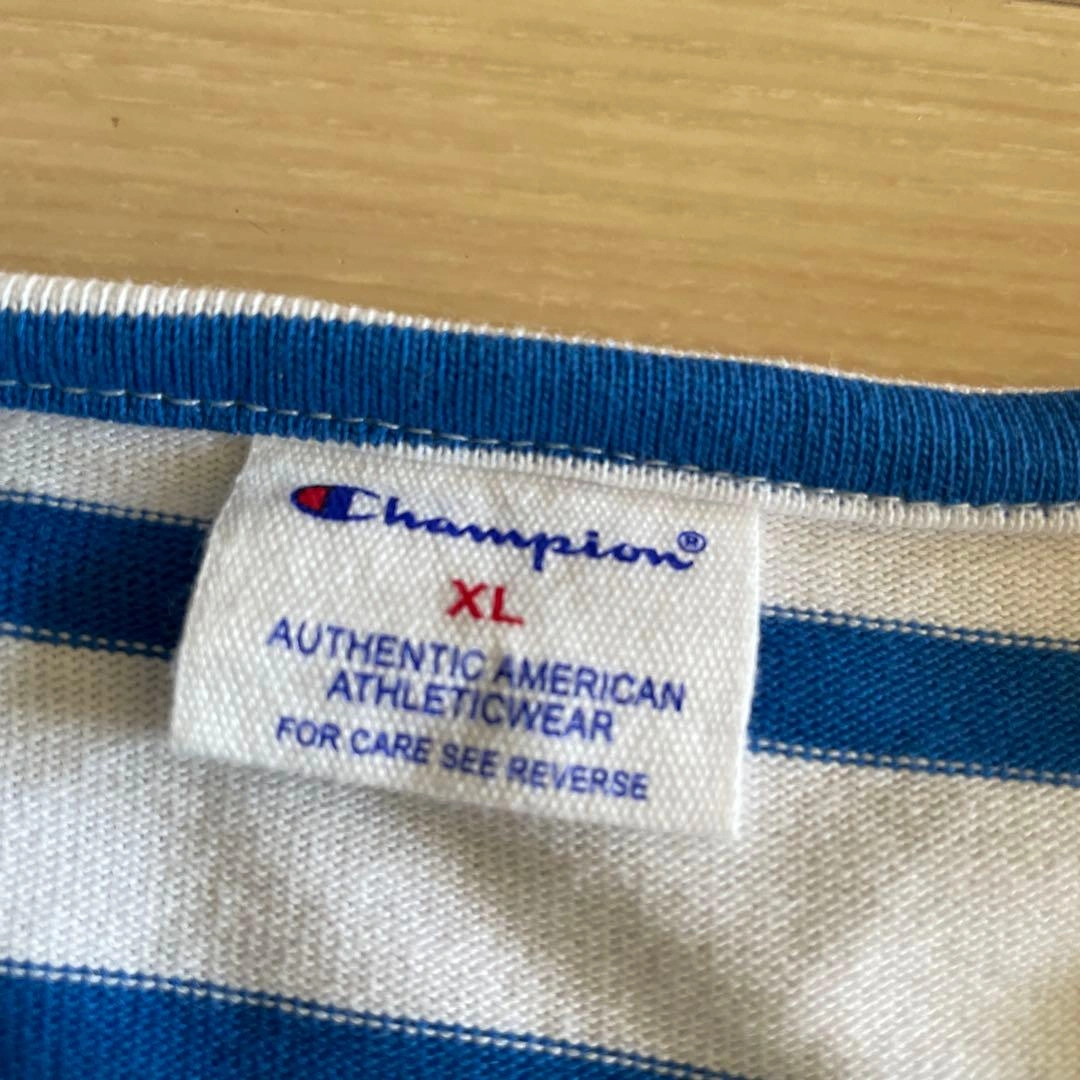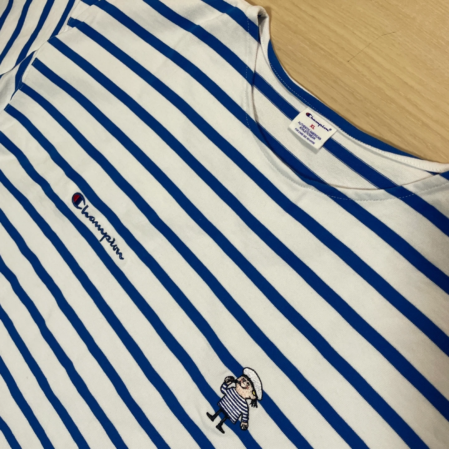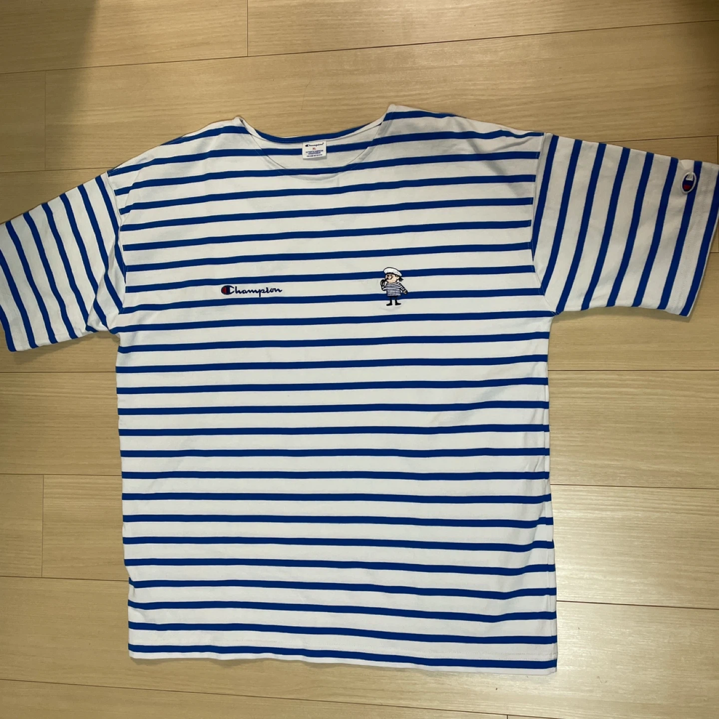 数回の着用のみです。 - ブランド: Champion - 色: 白/青ストライプ - サイズ: XL - デザイン: ストライプ/キャラクター刺繍 肩幅···59cm 身幅···60cm 袖丈···22cm 着丈···70cm 目の詰まったヘビーウェイトのコットン100%素材を使用したボーダーショートスリーブTシャツです。身幅、肩幅、袖口に大きくゆとりを持たせたルーズフィット。2024SSシーズンの直営店限定コレクションのテーマである「マリンスタイル」を踏まえたボートネックのマリンボーダー柄。右胸にはChampion(チャンピオン)ロゴ、左胸には船夫をイメージしたキャラクターの刺繍入りです。同素材を使用したボーダーロングスリーブTシャツ(C8-Z401)も展開しています。※直営店、公式オンラインストア限定アイテムです。 ご覧いただきありがとうございます。