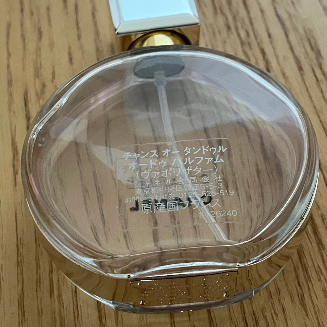 ・ブランド CHANEL ・商品名: チャンス オー タンドゥル Chance Eau Tendre ・商品 香水 - 香りの特徴: フルーティーフローラル - サイズ: 50ml - パッケージ: 箱付き ご覧いただきありがとうございます。 チャンス・オー タンドゥルです。 昨年、イセタンミラー グランツリー武蔵小杉店のCHANELブーツで10月に購入しました。 念の為、レシートも画像で掲載してます。 (レシートは写っていない箇所に個人名が記載、また悪用防止のため、お渡しはできません) 気に入って、毎日つけていましたが、、、飽きてしまいました。 香りは購入後半年程度なので変わらないように感じます。 残りは画像でわかるように少ないですが、お試しにいかがでしょうか?