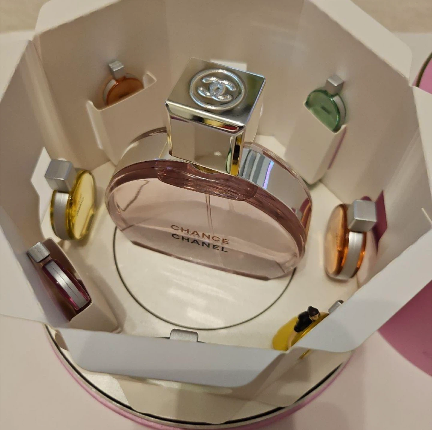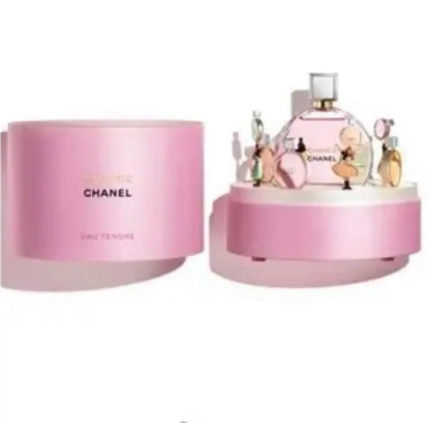 CHANEL チャンスオータンドゥル オードゥパルファム ミュージックボックス 【新品・未使用・未開封】 画像を撮る為だけ開封しましたが、香水は開封はしておりません。 製品説明 ジャン=ポール グードが監督したキャンペーン フィルムにインスパイアされた特別限定品、チャンス オー タンドゥル オードゥ パルファム ミュージック ボックス。チャンスと出会うダイナミックな瞬間を、回転するステージで表現します。 トゥルー ピンクを中心にパステルカラーで統一。ダンサーのフィギュアが、キャンペーン フィルムのアップビートな音楽に合わせてチャンス オー タンドゥルの周りを回転します。 エンボス加工が施されたボックスは手作業で作られたもの。フィギュアも職人によって一つ一つ色付けされており、いつまでも大切にしたいコレクション アイテムです。 内容 チャンス オー タンドゥル オードゥ パルファム 100mL x1 本体 x1(付属品:ボトル型パーツ x4、フィギュア x4) USBケーブル(蓋の中に格納)x1 3.7V リチウムイオン バッテリー(充電可能、持続時間:5時間程度)x1