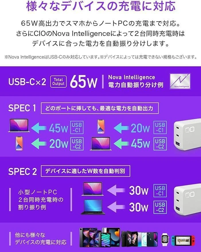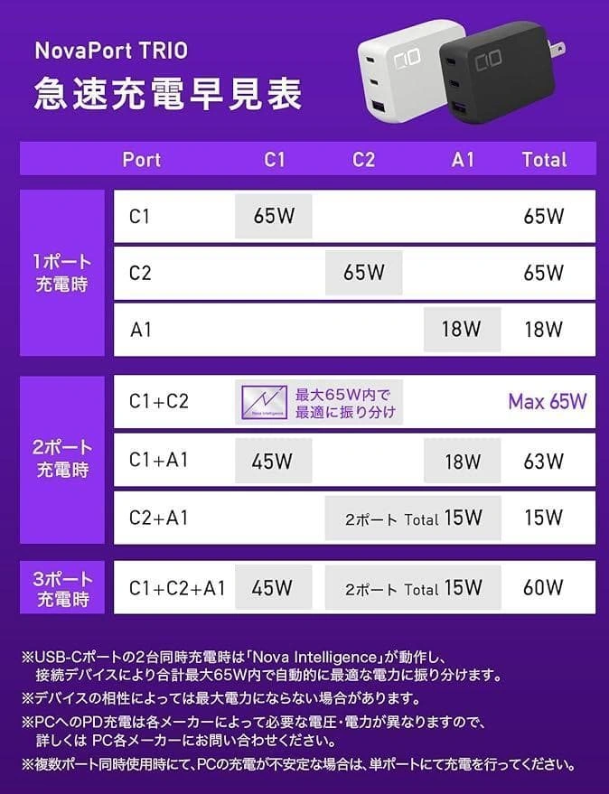 CIO NovaPort TRIO 65W 白 3ポート GaN充電器
