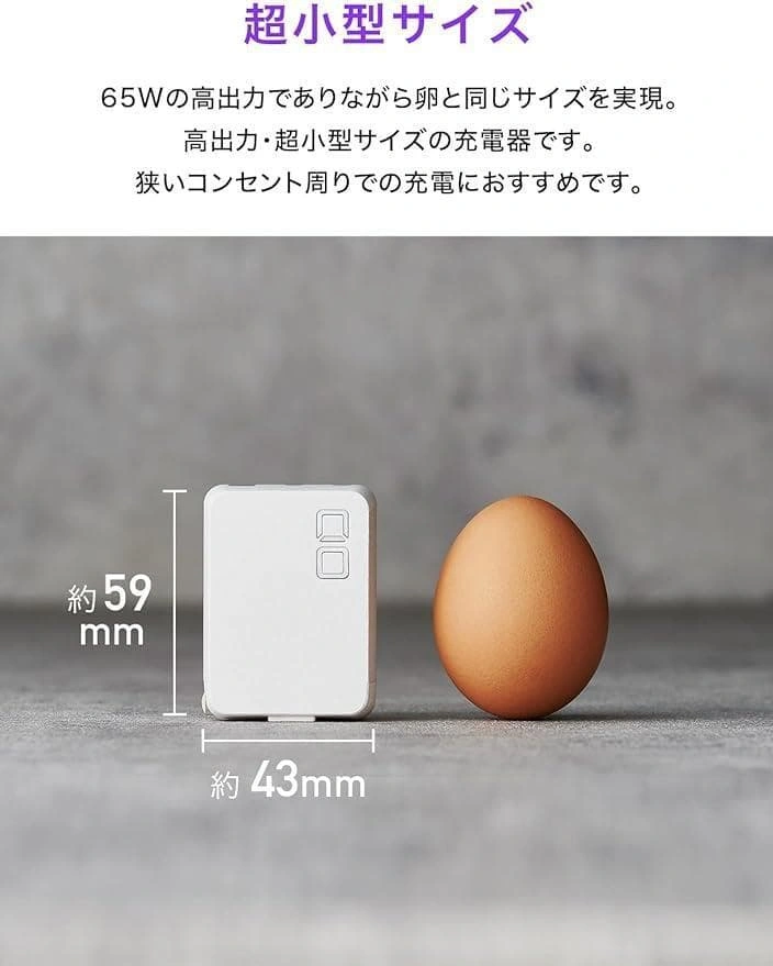 3ポートの超小型GaN充電器です。Nova Intelligence機能により最適な充電が可能。 メーカー希望小売価格:¥6,589(税込) 複数デバイスご利用のユーザーに便利な2ポート搭載。 出力W数は合計最大65Wです。45W、30W、20Wの出力が自動で振り分けられます。 Nova Intelligenceによって、どのポートに挿しても、デバイスに適した電力を自動で振り分け充電を行います。 USB-C単ポート最大出力65WでPC充電にも対応! MacbookProだけでなく、PD対応の様々なノートPCにも充電可能。 スマートフォンからノートPCまで幅広い機器に対応しています。 利用機器毎に異なる充電器を持ち運ぶ必要はありません。 ※高出力充電には対応したケーブルが必要です。 世界最小級サイズでコンセント周りも快適。 GaN(窒化ガリウム)テクノロジーを採用し極限まで小型化しつつ発熱を抑えることが可能になりました。 コンパクトな為、コンセント干渉のストレスがなく軽さも嬉しい充電器です。 おりたたみ式プラグ搭載コンパクトでスマートなデザイン。 こだわったデザインで持ち運びにも使いやすい手軽なコンパクトさ。 ざらざらした表面のシボ加工で傷がつきにくく持ち運びにもストレスがかかりません。 - モデル名: NovaPort TRIO 65W - ポート数: 3ポート - 色: 白 - サイズ: 超小型 - 機能: Nova Intelligence搭載 ご覧いただきありがとうございます。 ワット数...51〜60W ケーブル対応...USB Type C 充電方式...急速充電 #CIO #充電器 #65W #シーアイオー ご希望の方はお気軽にご連絡ください。