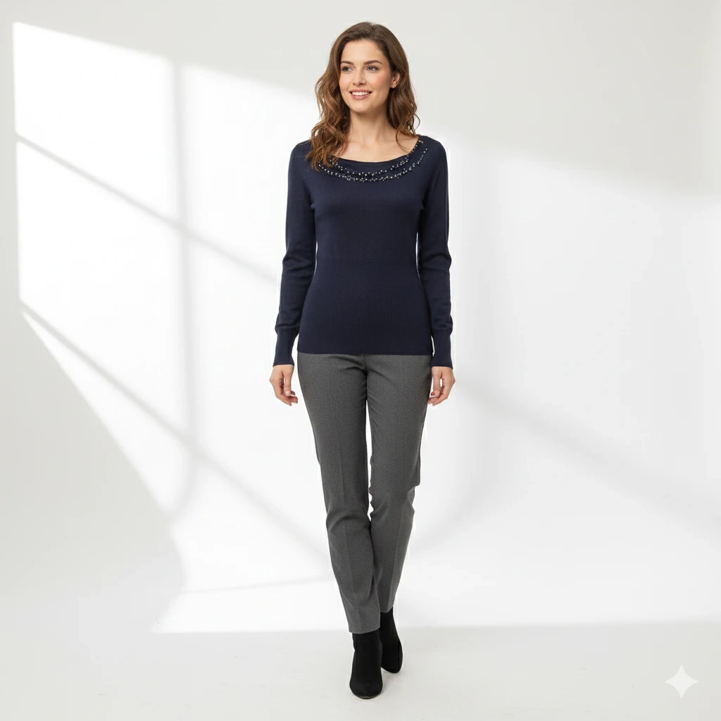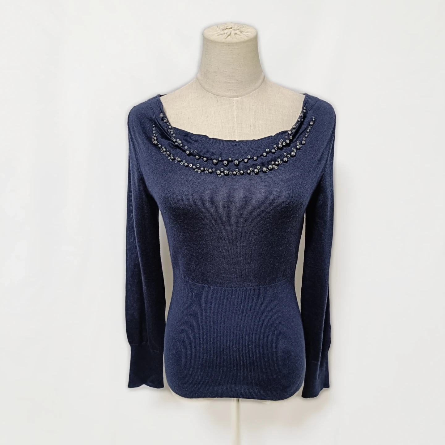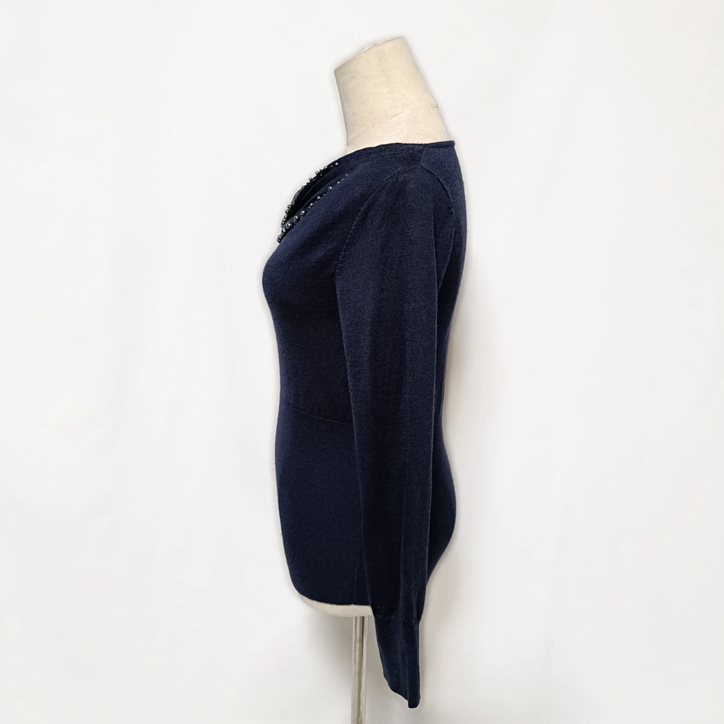 ご覧いただきありがとうございます! シトラスノーツらしい、女性らしくエレガントなシルエットのニットです。 デコルテラインを美しく見せる広めのネックラインには、贅沢にビジューとスパンコールがあしらわれており、アクセサリーいらずで顔周りが華やかに見えます。 ウエスト部分は細めのリブ切り替えになっており、自然にシェイプされるため、スタイルアップ効果も抜群です。 □商品名□ CITRUS NOTES シトラスノーツ ビジューニット ネイビー 羊毛混 M □ブランド□ CITRUS NOTES シトラスノーツ □表記サイズ□ M □実寸サイズ(cm) □ 着丈:53 肩幅:36 身幅:38 袖丈:62 ※実寸につきまして多少の誤差はご了承ください。 ※表記サイズだけではなく実寸のサイズをご確認ください。 □カラー□ ネイビー(濃紺) □素材□ 羊毛(ウール)50%、アクリル50% 羊毛混で暖かく、しっとりとした肌触りの良いハイゲージニットです。 □コンディション□ 目立った汚れやダメージなど特にございません。 ※汚れはできる限り写真にて掲載しております。まずは画像をご確認ください。 どうぞよろしくお願い致します。 □商品管理番号□ K3-R-5649