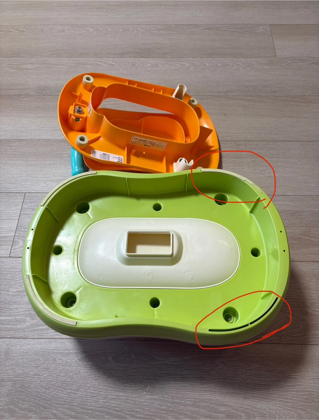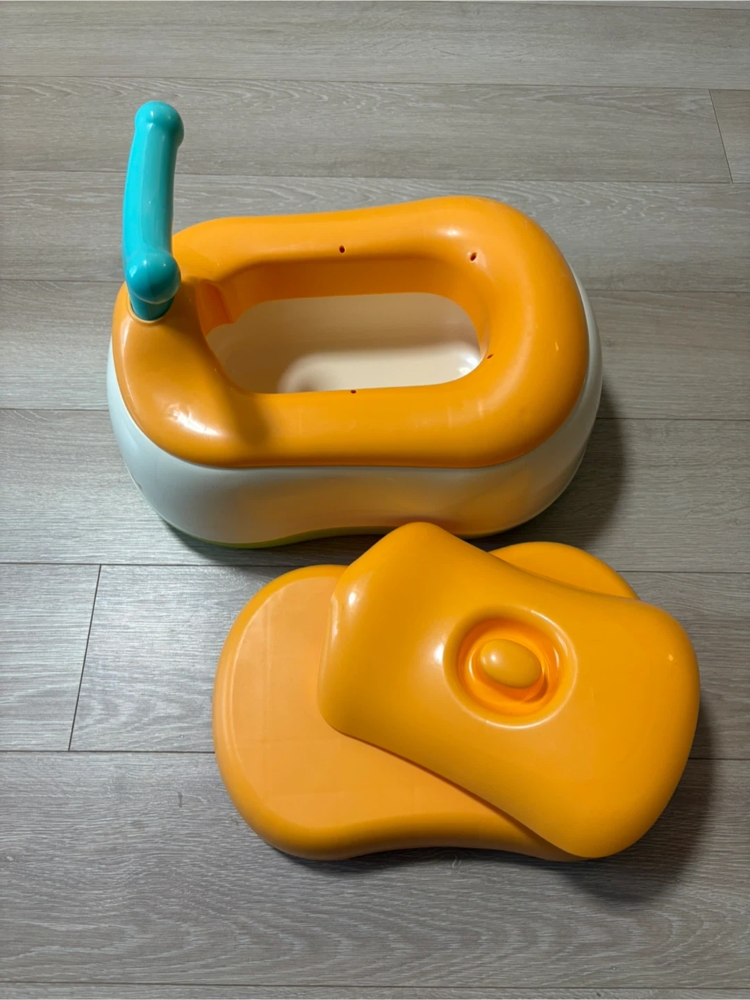 コンビのベビーレーベル おまるでステップです。 ・色:オレンジ、白、緑、水色 ・子供用おまる、ステップとして使用できます ・取扱説明書、箱はありません。 ・使用感はありますが、まだまだお使いいただけます。 ・画像5枚目は公式より ・アルコール除菌シートで拭き上げています。 ・定価4,950円 ※裏側の部品が一部欠けていますが、我が家での使用にはほとんど問題ありませんでした。画像6枚目 中古品であることをご了承ください。