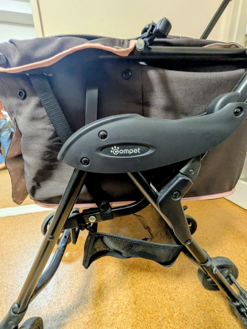 コムペットのペットカートです。 ・ブランド:コムペット ・色:ブラウン、ピンクの縁取り ・付属品:レインカバー、おまけバッグ付 ・状態:サイズが合わなかったため、数回のみ使用 ご不明点があればお気軽にご連絡ください。 お取り引きにつきましては お手数ですがプロフィールをご覧下さい。 お取引場所は 千歳船橋駅、または桜丘区民センター周辺を希望します。 ご検討よろしくお願い致します。