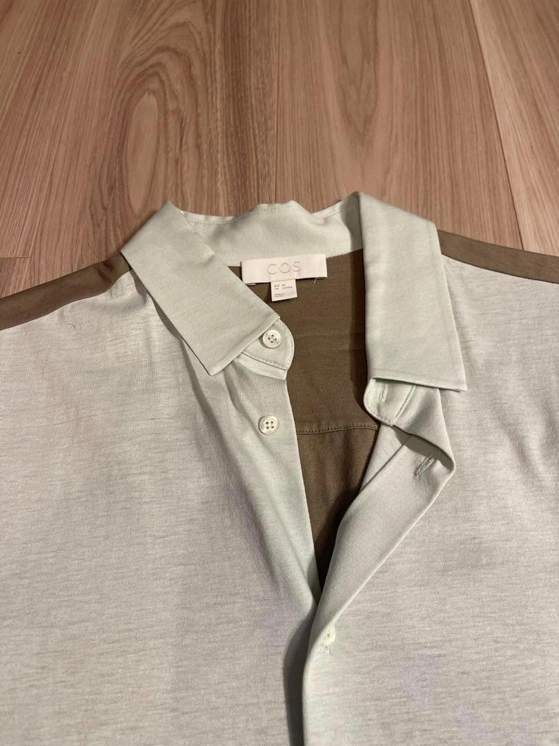 ライトグレーとブラウンの配色が特徴の半袖シャツです。ポリエステル混紡素材で快適な着心地です。 #COS - ブランド: COS - 色: ライトグレー/ブラウン - スタイル: 半袖シャツ - 素材: ポリエステル混紡 - サイズ: XS 柄...無地 カラーデザイン...ボタンダウン(BD) カラー...カーキ系 汚れ・破れ・臭いなど...なし ご希望の方はお気軽にご連絡ください。
