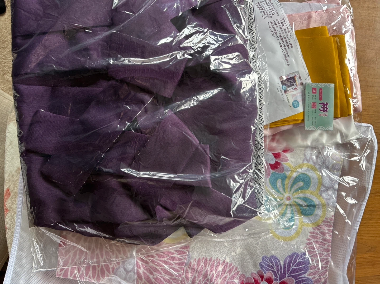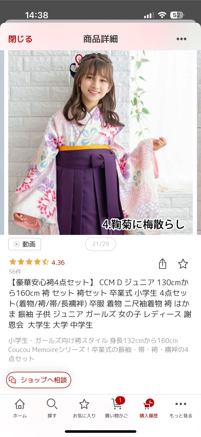 袴の4点セットです 【情報】 ブランド:Coucou Memoire 種類:袴セット サイズ:フリーサイズ 素材:ポリエステル100% 【状態】 卒業式で1度着用しました。 袴はクリーニング、その他はホームクリーニング済みです。 中古品であることご了承ください