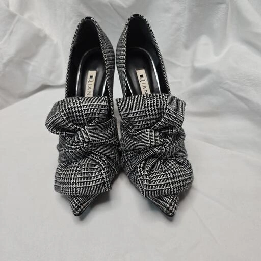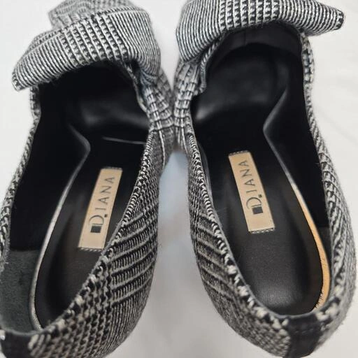 DIANA ダイアナ リボン(取れません)付き グレンチェック柄ハイヒール 中古 箱無し かかとゴムが擦れているので やや傷・汚れありにしております 着用回数少ないので 底のスレもないのですが かかとのゴムが擦れてますので見た目が気になる方は交換された方がいいですが 履く分には問題ありません ファブリックの為 多少の毛羽立ち・使用感はありますが気になるほどではなく 目立つ難は特にないとは思いますが気になる方はご遠慮ください これからの季節にとってもかわいいので 使っていただけると嬉しいです - 色: ブラック・ホワイトの グレンチェック柄 - デザイン: リボン付きのポインテッドトゥ - ヒールの高さ: 7cm 中ヒール - 素材: 布地 - スタイル: エレガント ご覧いただきありがとうございます。 カラー...ブラック系 ヒール高さ...5.1〜7cm つま先...ポインテッドトゥ ソールヒール形...ピンヒール 汚れ・破れ・臭いなど...なし