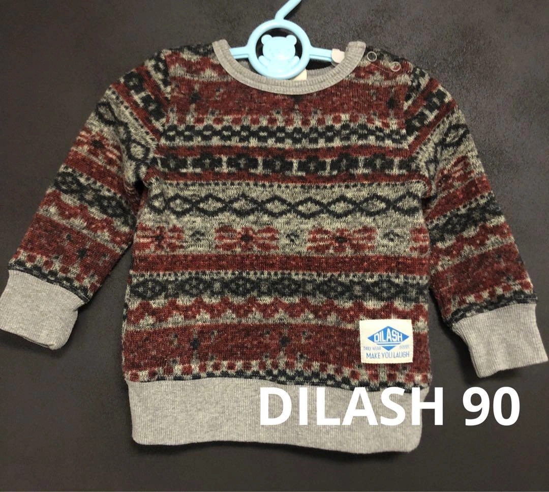 DILASH セーター 90cm 多少の使用感はありますが、汚れやほつれは見当たらず、まだまだ着ていただけると思います。 デニムと合わせても可愛いです。 記名があるため、塗りつぶしてのお渡しとなります。ご了承ください。 used品にご理解の上、ご購入ください。 複数ご購入の場合、お気持ちお値下げさせていただきますので、ご希望の方はお気軽にご連絡ください。