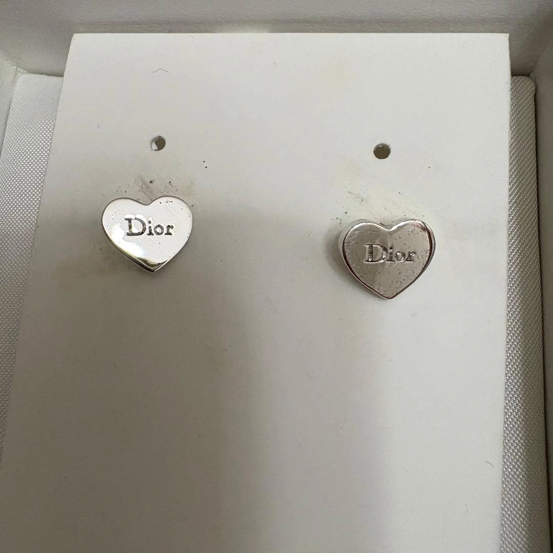 Diorのハート型ピアスです。シルバーでエレガントなデザインです。 中古ですので、状態は写真にてご確認をお願いいたします。大きな傷はありませんが、細かな傷はあります。キャッチは少し黒ずんでしまっています。 釜山のDFSで購入した正規品になります。 保証は期限切れです。 - ブランド: Dior - デザイン: ハート型 - 素材: シルバー - 付属品: 箱、説明書 - 色: シルバー ご覧いただきありがとうございます。