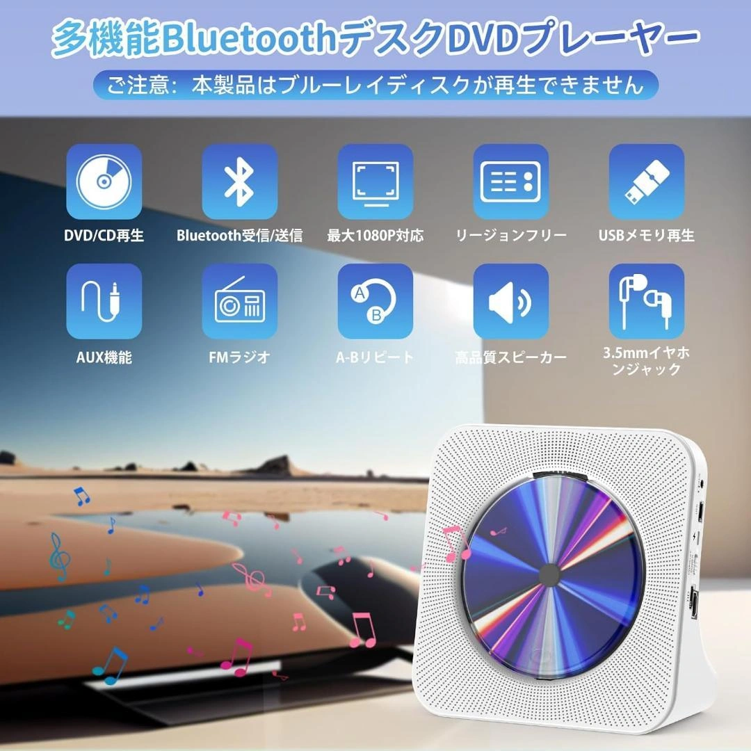 DVD CDプレーヤー Bluetooth受信 FMラジオ 1080P対応