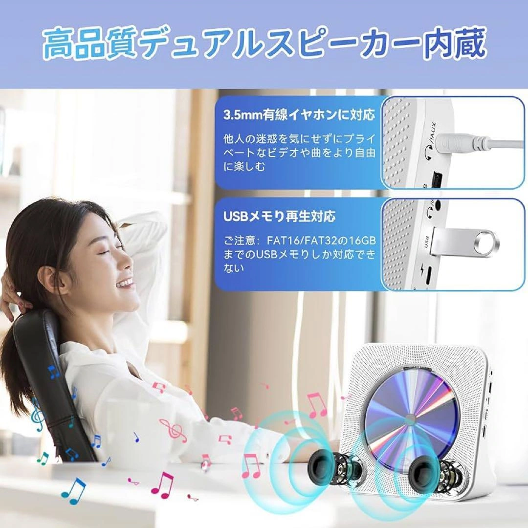 お得な情報はプロフィールをご覧ください☻ 未使用品です(検品のため開封はしています)。 【Bluetooth送受信両対応】 スマートフォン・タブレット・PCとワイヤレス接続が可能です。DVDやCDの音声をBluetoothスピーカーへ送信したり、スマホの音楽を本体スピーカーで再生することもできます。 ※SONY製ワイヤレス機器、AirPodsには非対応。 【1080P HDMI出力】 HDMIケーブルでテレビやプロジェクターに接続すれば、最大1080Pの高画質映像を実現します。リージョンフリー対応で海外DVDも再生可能です。 【多機能モデル】 DVD・CD再生に加え、Bluetooth、USB再生、FMラジオ、AUX入力に対応。 ※USBはFAT16/FAT32、16GBまで対応。 【高音質スピーカー内蔵】 Hi-Fiスピーカーを内蔵しています。3.5mmイヤホンジャック搭載。 【幅広い対応形式】 DVD/VCD/CD/CD-G/MP3/WMA/JPEGなど多彩な形式に対応。 ※ブルーレイ非対応。 5480円 ご希望の方はお気軽にご連絡ください。