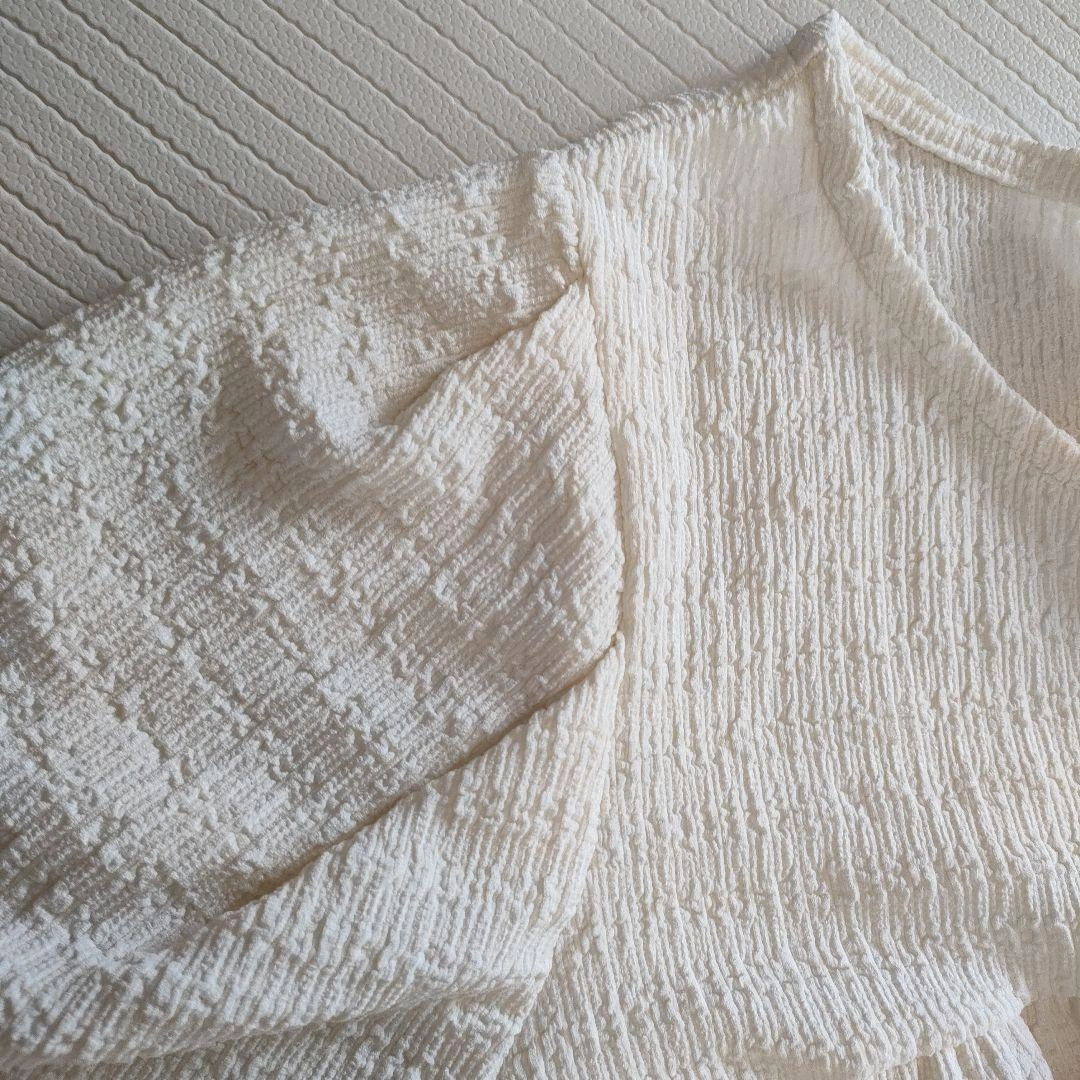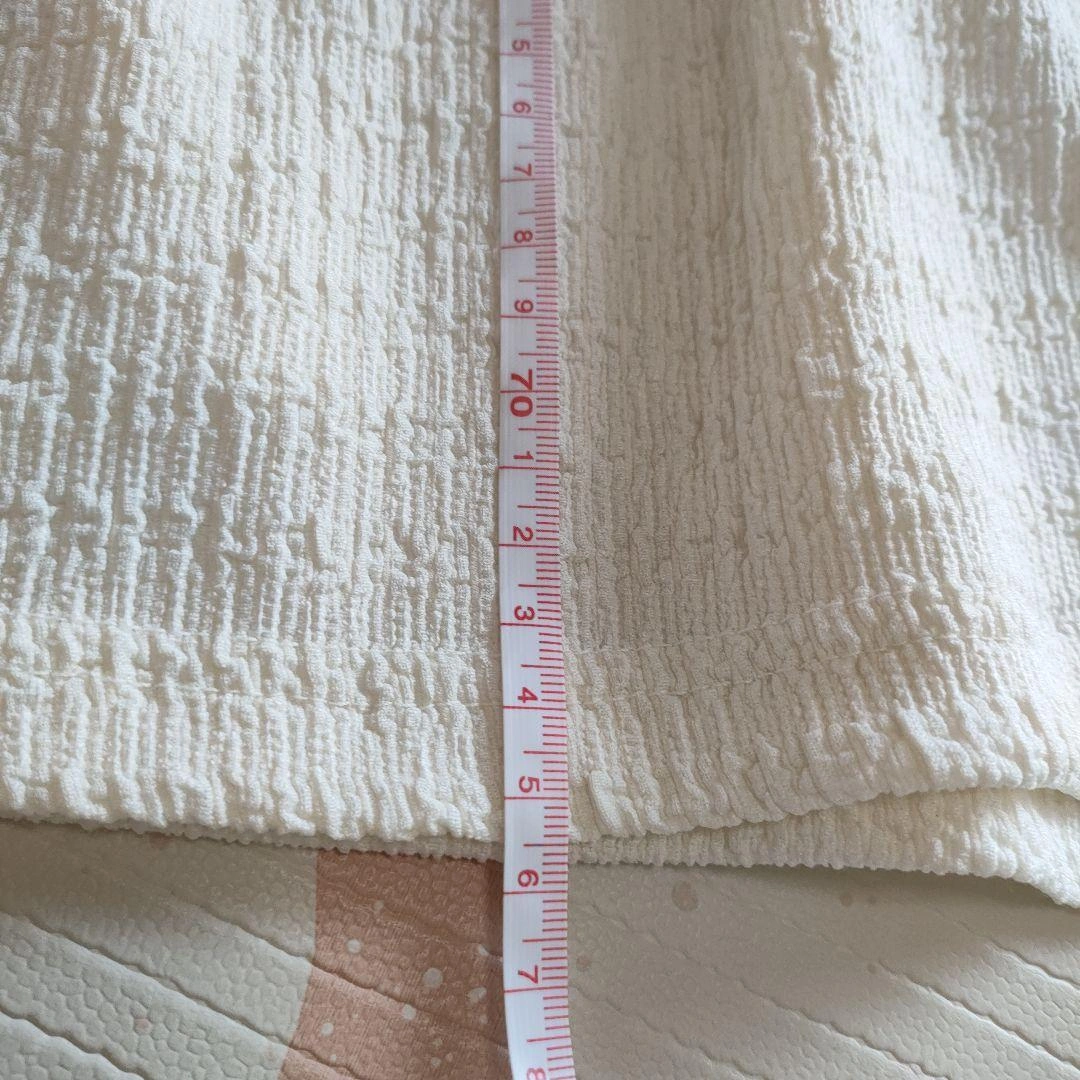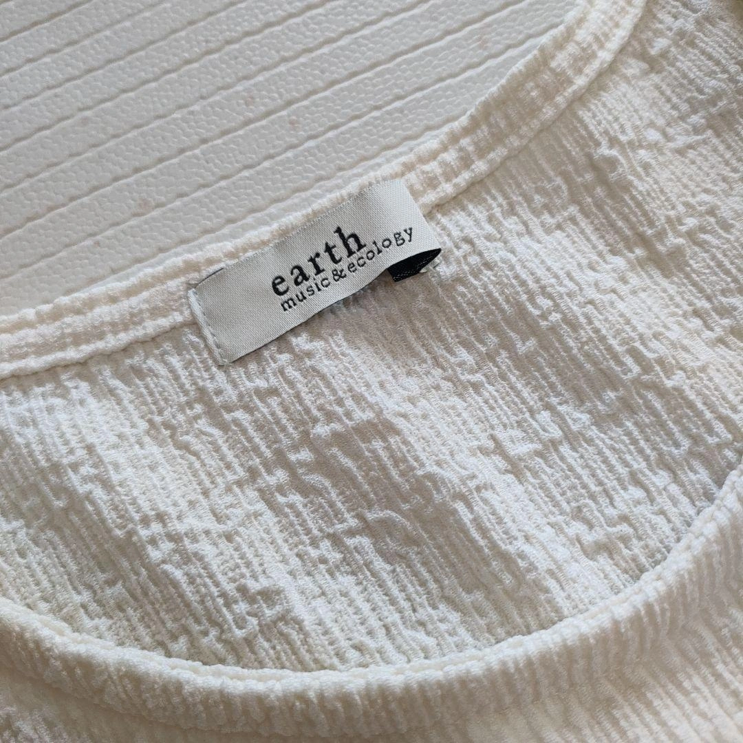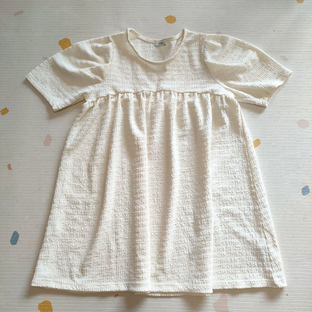 earth music&ecologyのチュニックです。 カラー:アイボリー(薄いクリーム色) 1度着用しました。汚れキズ等ありませんが、見落としがあったらすみません。目視では目立つ所に汚れはありません。 少し透けるかもしれないので、インナーがあったほうが安心かと思います。 生地は表面がポコポコしているので肌に張り付かずサラッとしています。 裾はヒラヒラしているのでインするのはゴワつきます。 袖も長めなので二の腕隠せるし、夏場の冷房対策にも良いかと思います。 伸縮性があるので着やすく、FREE SIZEですが、普段L〜LLを着る方でも問題無く着られると思います。M〜LLが目安かなと思います。 妊婦さんにもいいデザインです。 着丈:肩から約75cm 袖丈:肩から約28cm 身幅:胸の切り替え部分45cm(伸ばすと55cmくらいまで) 元値は4000円ほどです。 ご希望の方はお気軽にご連絡ください。
