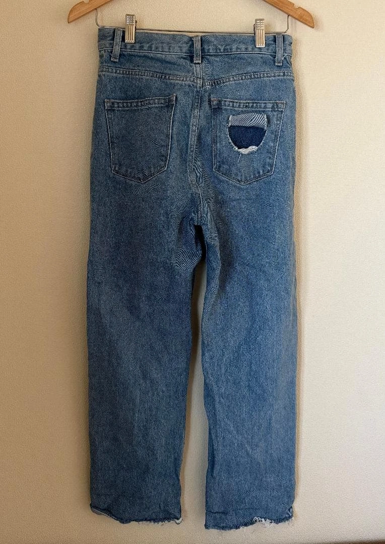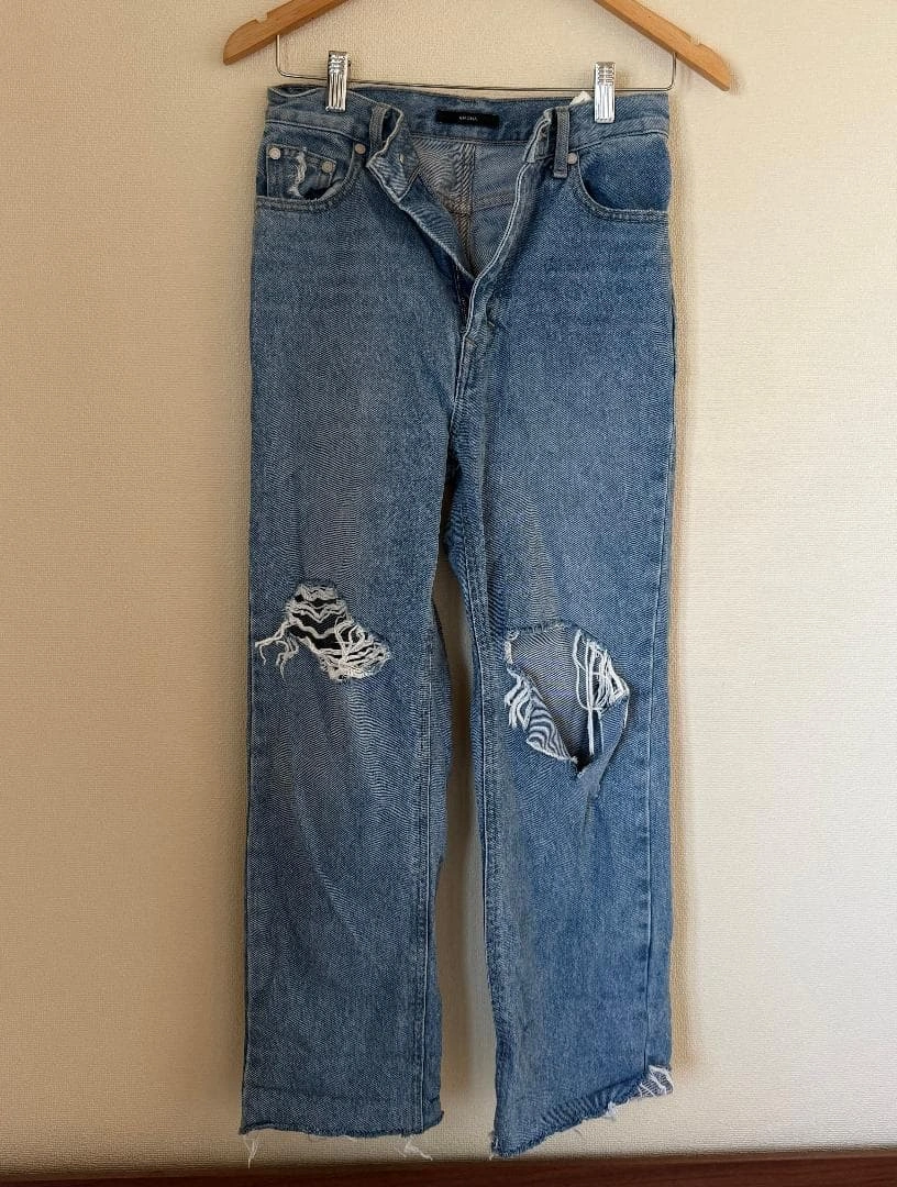 ダメージ加工のライトブルージーンズ、サイズSです。 履き心地良きです◎ 汚れ・破れ・臭いなどは確認できる範囲ではありませんが、確認漏れがあるかもしれませんので、神経質な方はお控えください。 ご覧いただきありがとうございます。
