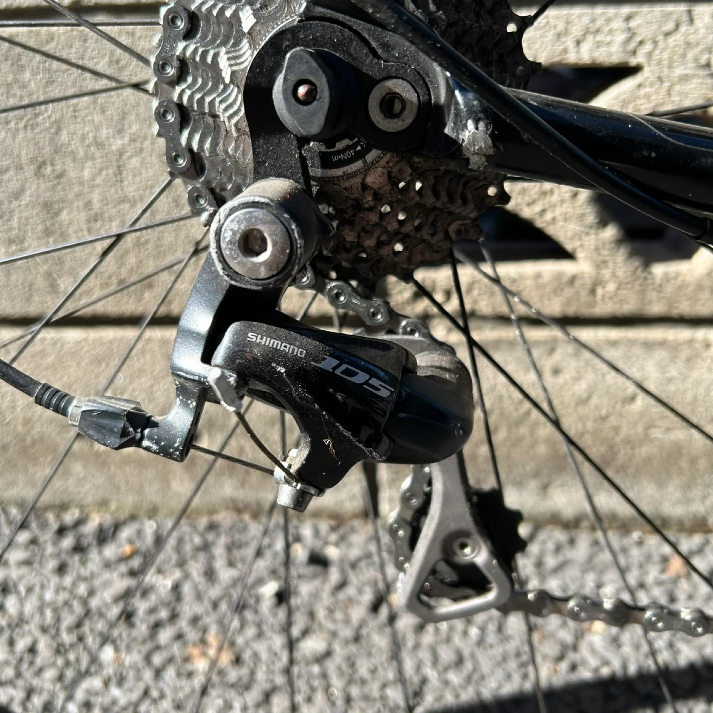 2009年頃のおしゃれな細系フレーム、本格軽量アルミロードです。参考価格 ¥138,000円 京王線の調布~桜上水間あたりでの引き渡しも可能です。 乗っても帰れるようにライトとテールランプお付けします。 フロントフォーク:カーボン メインコンポ:SHIMANO Tiagra 2x10s クランク:SHIMANO Tiagra 50/34T 170mm ブレーキ:SHIMANO 105 キャリパーブレーキ ホイール:Mavic CXP21 シートポスト:Specialized カーボン サイズ:50(メーカー推奨身長 165〜180cm) 172㎝で調整済 トップチューブ525㎜ 【*】最近フロントをアウターギア、後ろを一番ローの10速に入れている時のみ、ペダルを後ろに回すと、フロント側でチェーンがたまに外れる現象がおきます。他のシフト組み合わせの時は外れません。 ショップで聞いたらチェーンリング周りの摩耗によるものでパーツ交換すれば直るとはいわれました。 チェーンは12月に交換済です。 状態、使用感等は写真をご参照下さい。 よろしくお願いします。