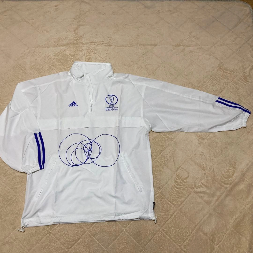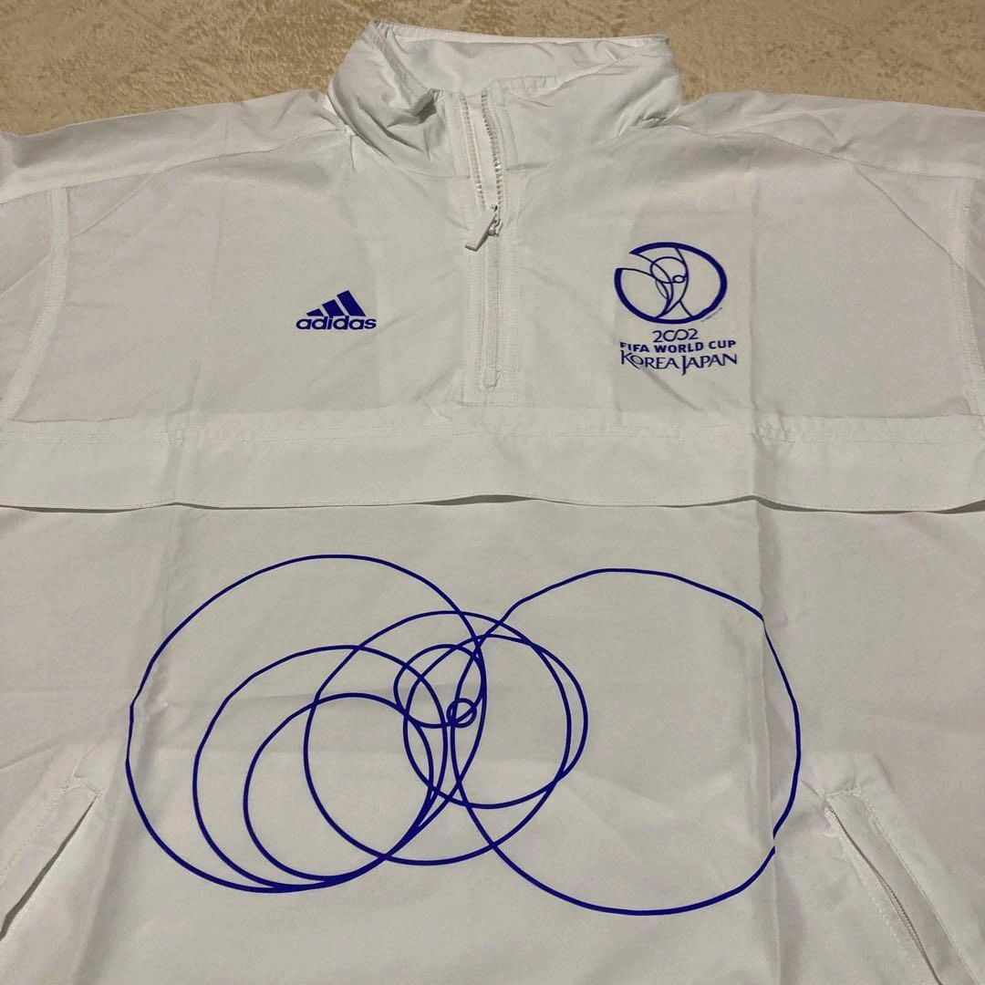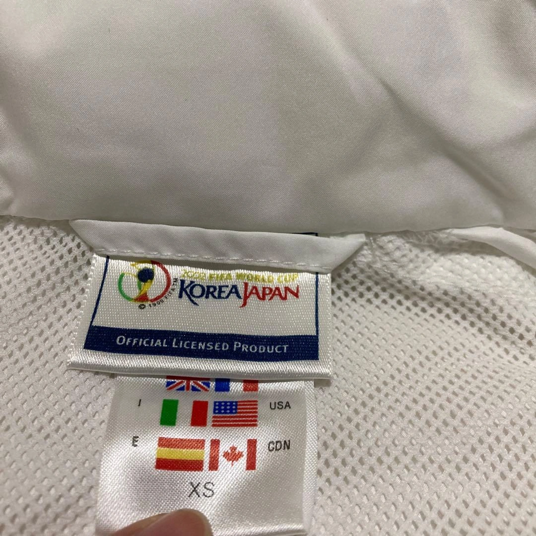 FIFA 日韓ワールドカップ 2002年のスタッフ用ナイロンジャケットです。 当日数時間使用しただけです。一ヶ所小さく汚れ?があります(画像5) サイズはXSですが、かなり大きめです。 フードが襟にしまえる様になっています(画像4) 一度使用した物ですので、気になる方のご購入はご遠慮願います。