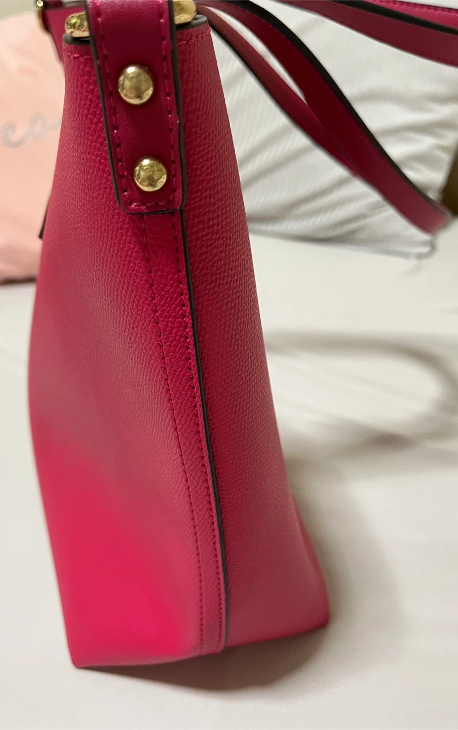 ご来店ありがとうございます。商品のサイズにつきましては、写真をご確認ください。中古品であることをご理解の上、ご購入ください。返品はお受けできませんのでご了承ください。 写真のバッグの色は部屋の各コーナーの照明により異なる場合があります。 濃いピンクのショルダーバッグです。2、3回しか使っていないので、まだ新品のように見えます。 ブラット : FIRANO 色 : ピンク サイズ : バッグのサイズは写真をご覧ください。🙇♀️ よろしくおねがいします。 武蔵小山駅または学芸大駅でお待ちください。