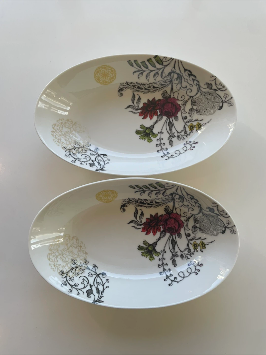 【Francfranc花柄 楕円皿 2枚セット】 陶器製