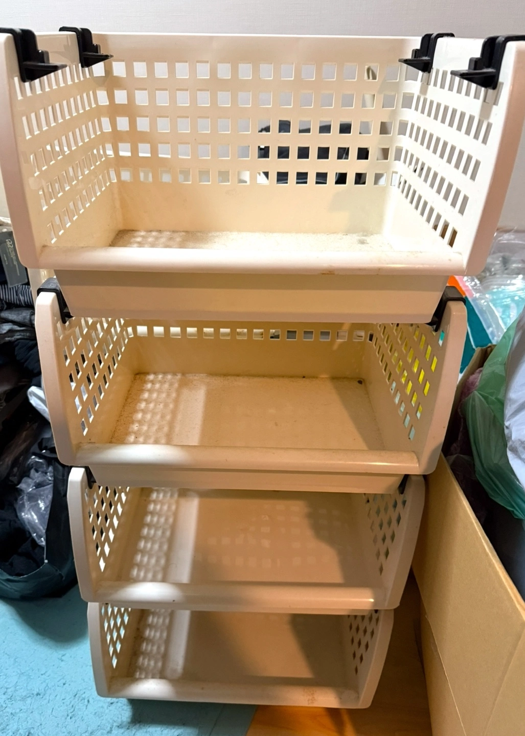 あたたかさ4段プラスチックラック、ほぼ未使用。組み立て不要。8日迄に貰って下さい!