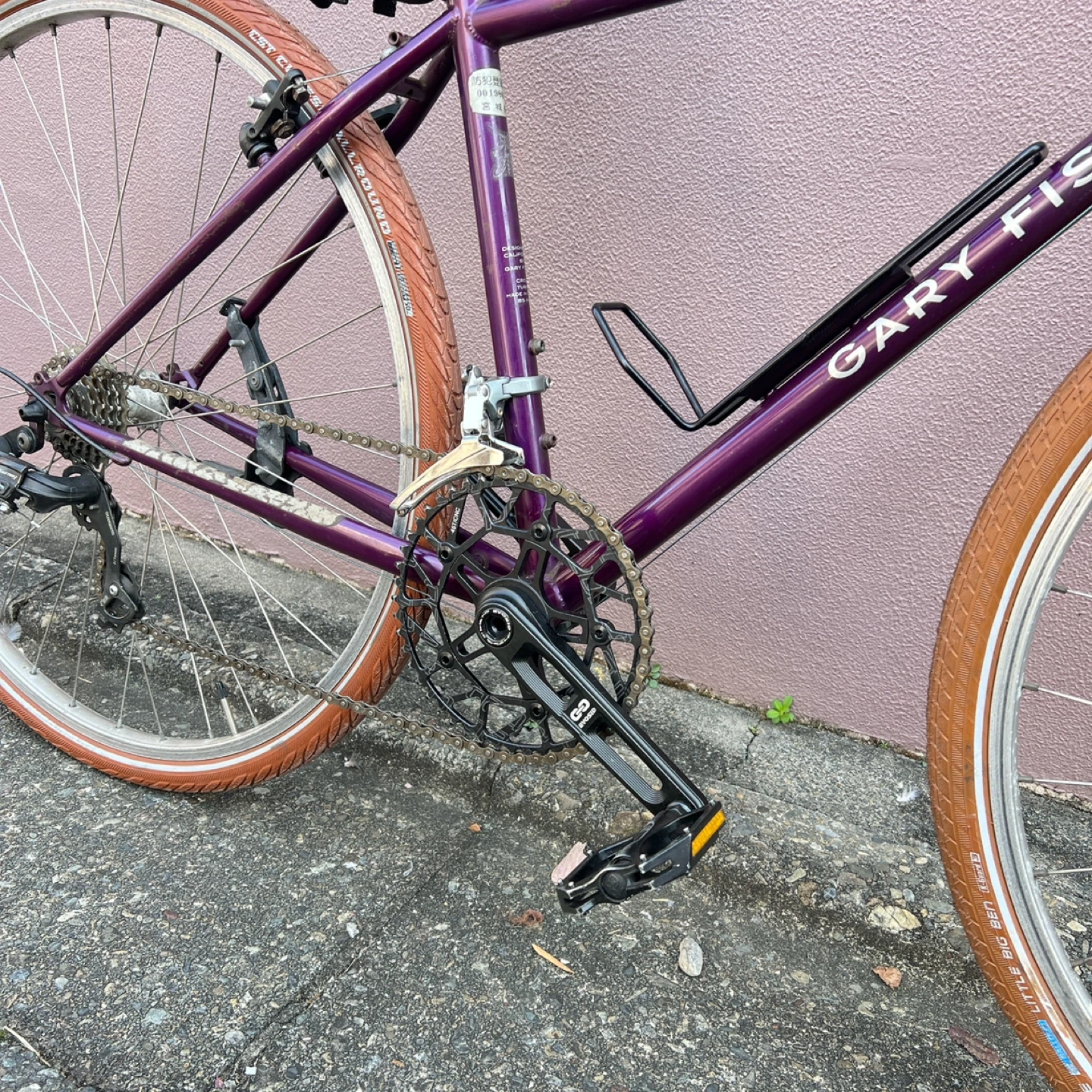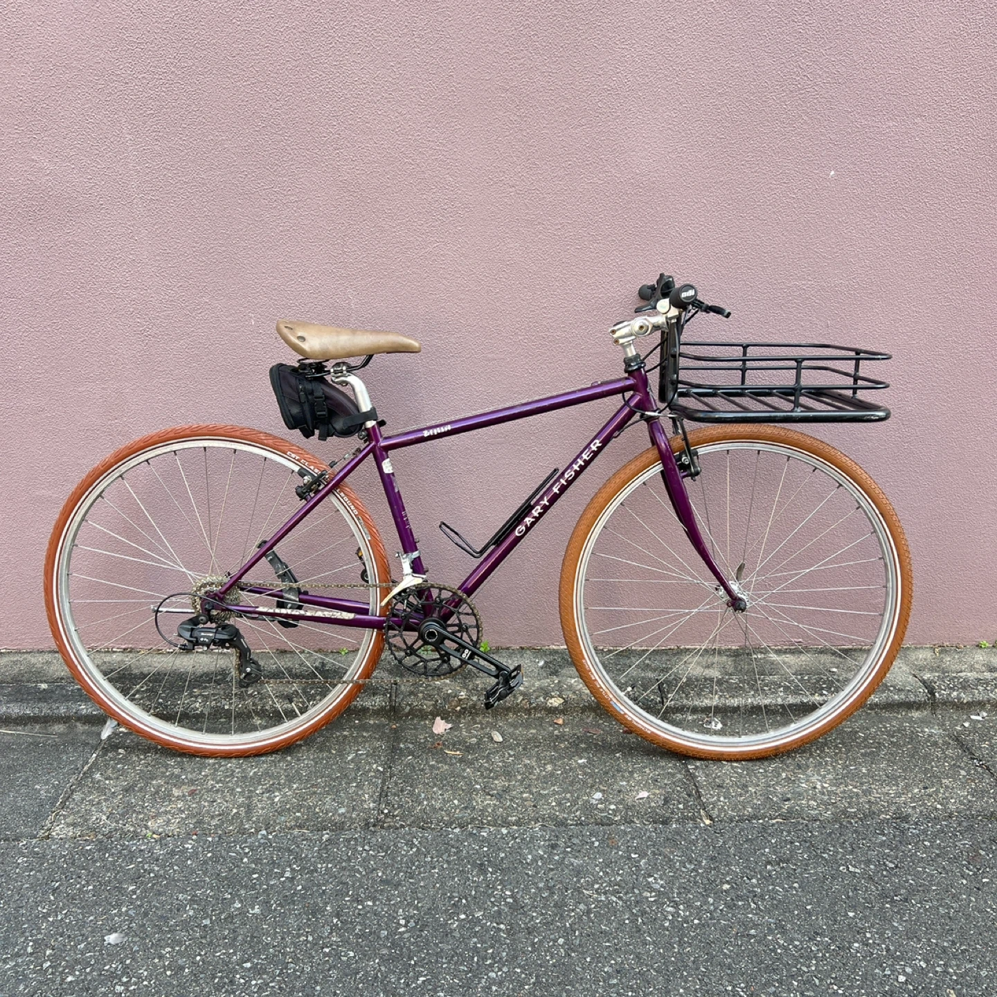 ゲイリーフィッシャー ビンテージ クロスバイク フレームは90年代のフレーム ギアは1×7速 使わなくなった自転車を譲り受けてカスタムしました ので全体的に素人ですが、整備しておりますので このままお乗りいただけます。 フレームとホイールだけ元々のパーツです ハンドルはコペンハーゲンのハンドル一体型カゴ タイヤは前後種類は違いますが新品 譲渡証明書発行しますので防犯登録できます