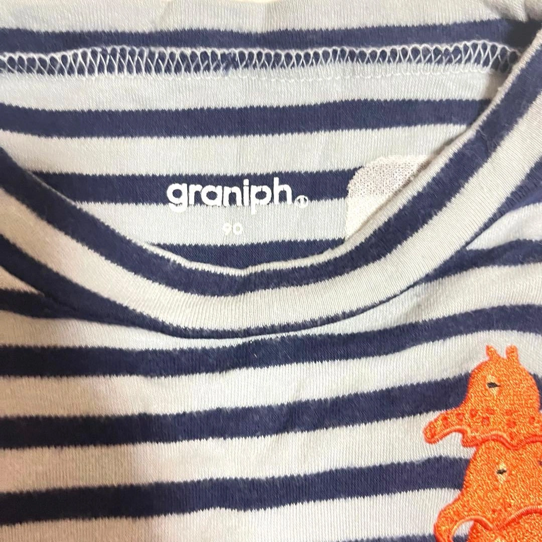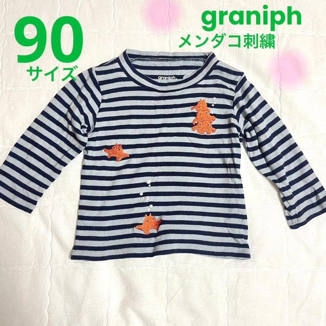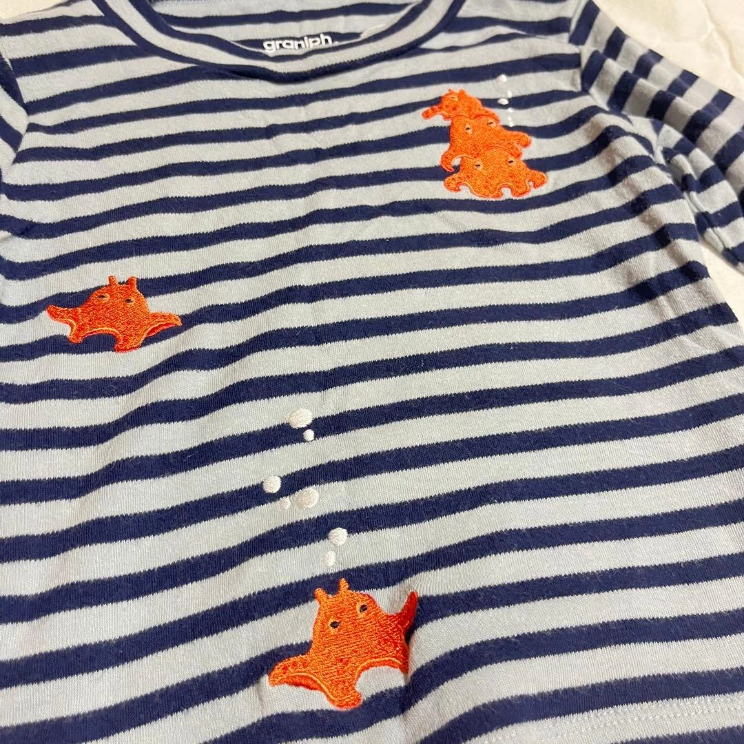 ボーダーデザインのカットソーです。 メンダコの刺繍が特徴的なTシャツです。 - ブランド: graniph - サイズ: 90 - 色: ストライプ(紺/水色) - デザイン: オレンジの刺繍(海の生物) ご覧いただきありがとうございます。 使用感は少しありますが、きれいな状態かと思います。 中古品・自宅保管にご理解頂ける方のみよろしくお願い致します。 ご希望の方はお気軽にご連絡ください。
