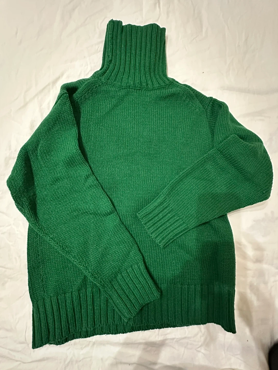 GU メンズS 緑色のタートルネックニットセーターです。1ー2回のみ着用後、きれいに洗濯してあります。 ・色:グリーン ・素材: アクリル 85%, 毛 15% ・状態:1ー2回使用後洗濯済み ご不明点があればお気軽にご連絡ください。