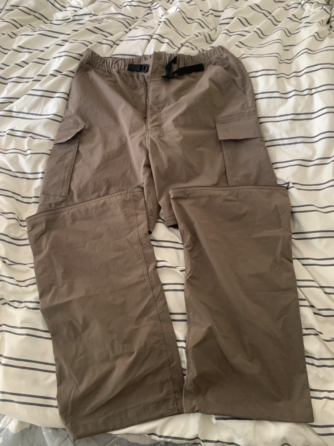 ジーユーのカーゴパンツです 短パン、長パン2wayではけます。 買ってあんまり使わなくて出品します。 【情報】 ブランド:ジーユー サイズ:XL ウエスト:87cm 素材:ポリエステル100%(裏地はポリエステル62%、アクリル38%) 【状態】 使用感少なめ 中古品であることご了承ください