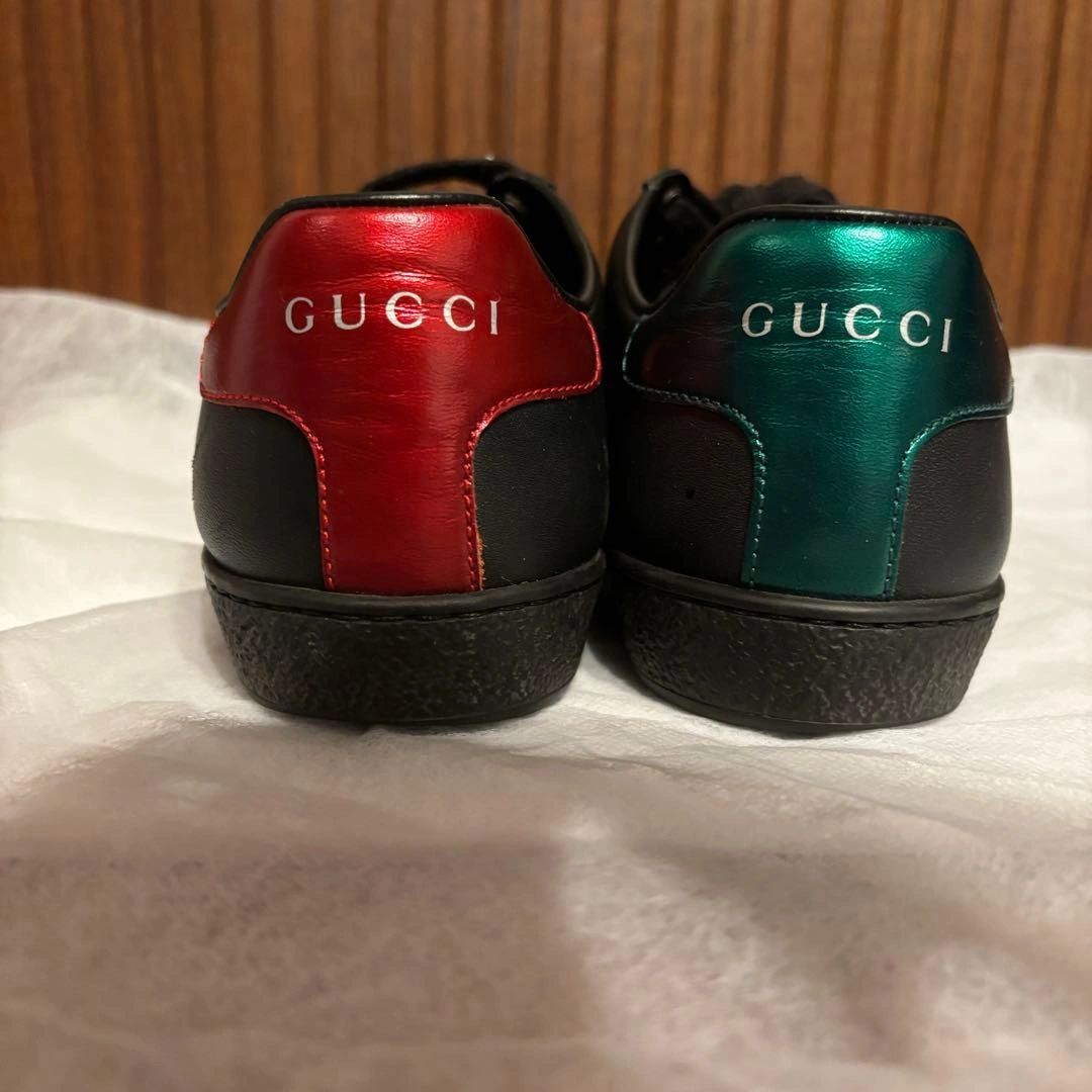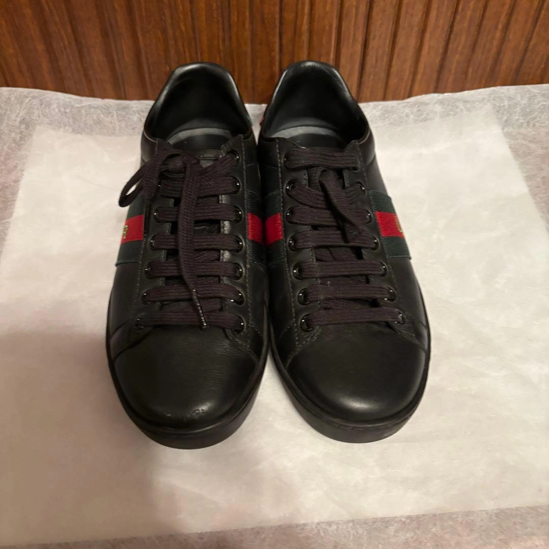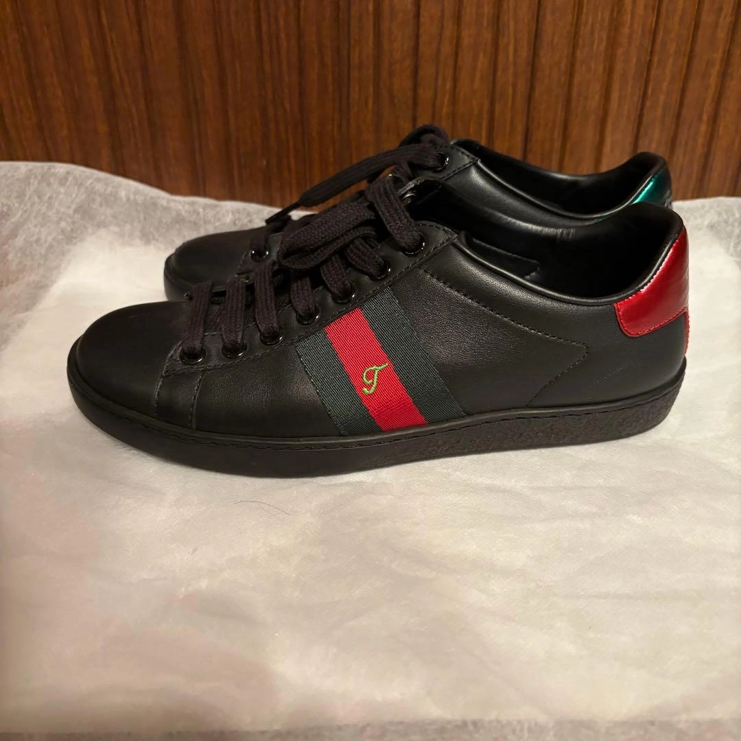 GUCCI ローカット スニーカー DIY (オーダー品) 両足に各々Tの刺繍があります。 数回履きました。写真の通り若干ソールの減りがあります。またアウトソール等に 若干汚れ、擦れがあります。表面に履きジワはほぼないと思いますが右足のつま先が少し擦れている所があります。 オーダー品をお勧めされて作りましたがあまり履く機会がなくなったので出品します。 サイズ:34 カラー:黒 レディース 付属品等はありません。靴を梱包して段ボールでの発送です。 一度人が履いた物ということであくまで中古品ですのでご了承頂いた上でご購入下さい。また素人検品ですので写真のイメージと違ったや見落としている傷や、履き心地が気に入らない等如何なる場合でも返品はお受けできませんのでご理解の上でご購入下さい。また完璧な品をお求めになる方は正規店舗にてご購入下さい。 素人保管のため、気になる方はご遠慮ください。 ご希望の方はお気軽にご連絡ください。