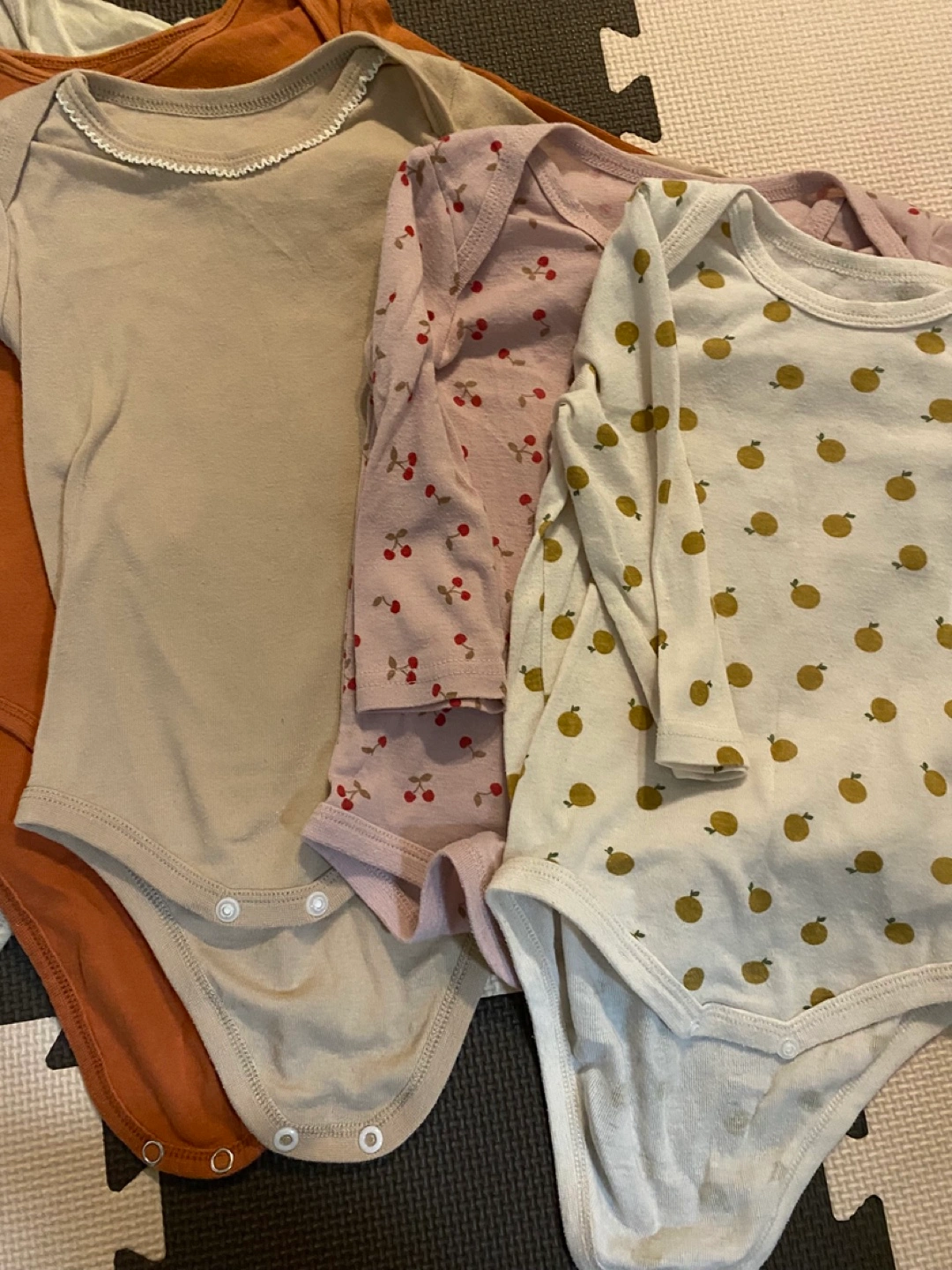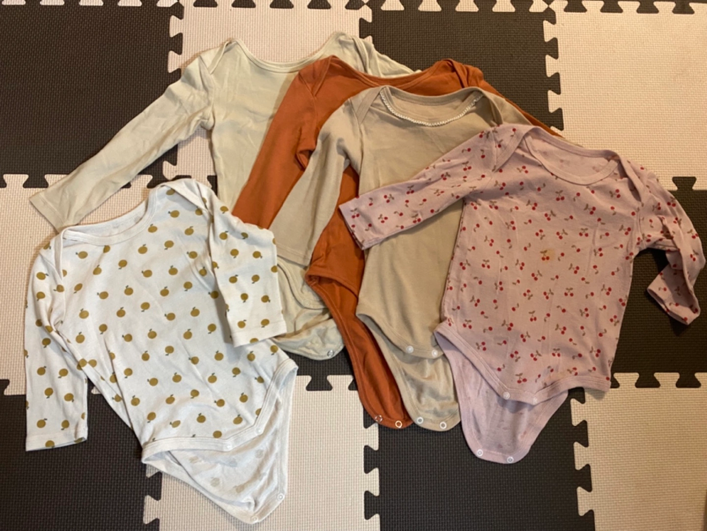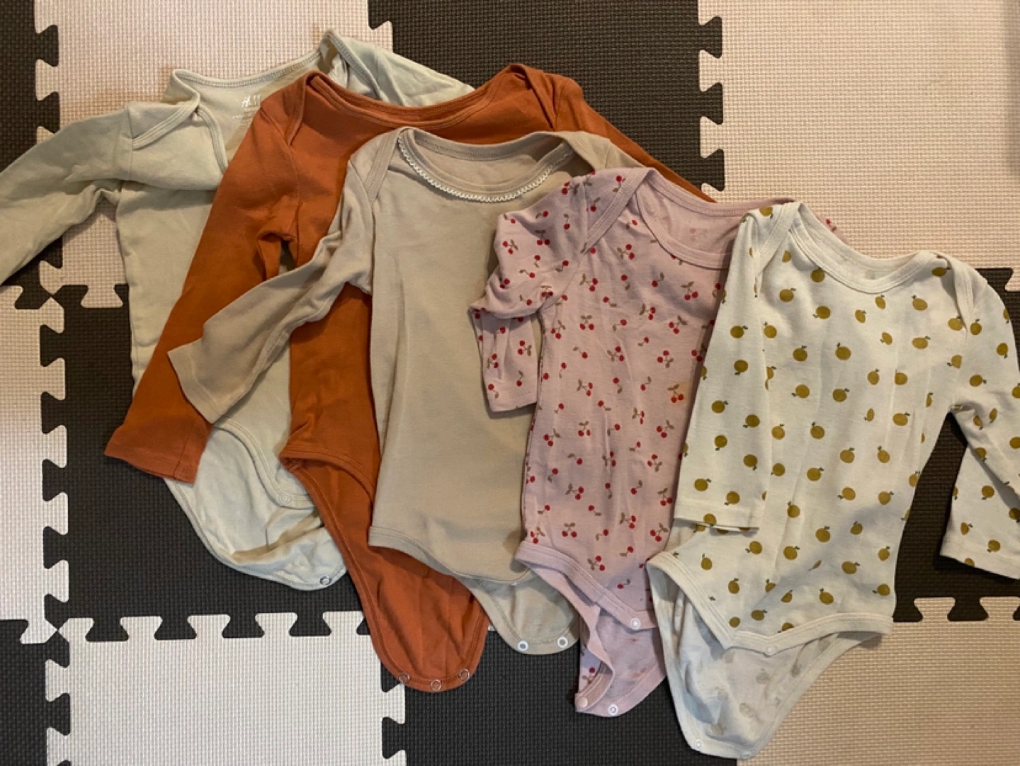 ●H&M ロンパース 2枚 ●西松屋ロンパース 3枚 ➜毛玉あり使用感あり、さくらんぼ汚れあり 合計5枚セット ※素人撮影の為、実際の商品と写真とでは多少色味が異なって見える場合がございます。 あくまでも中古品、自宅保管という事をご理解の上、ご検討いただければ幸いです。 ✦✧ ベビー服、ベビー用品多数出品しておりますので、まとめ売りも致します。 お気軽にコメントお待ちしてます✦✧ ❮受取場所 ❯ トレッサ、イオン駒岡店、ビックヨーサン樽町店など希望ですが、他ご希望ありましたらご相談します♪