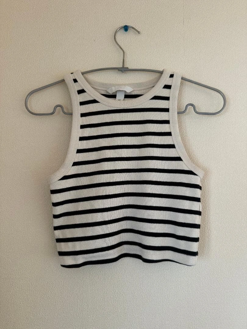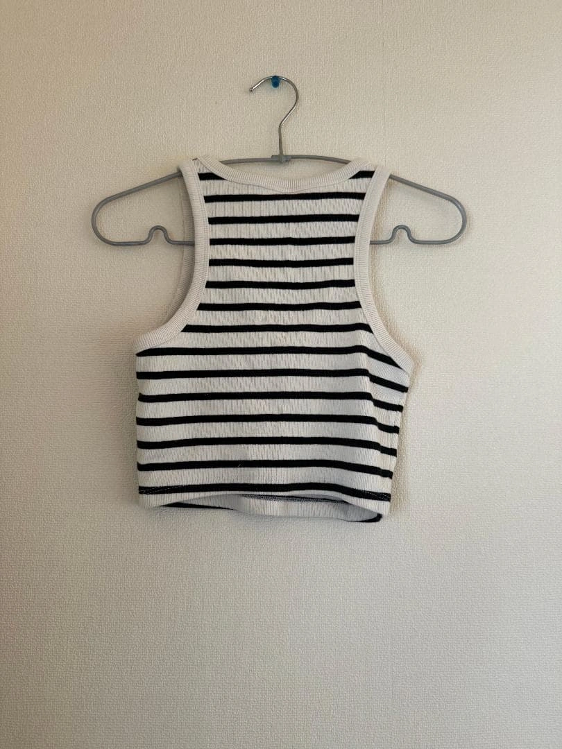白と黒のストライプデザインのクロップドタンクトップです。 コットン95%で快適な着心地。 普段着だけではなく、ダンスやスケボー時に着てもかわいいです◎ 汚れ・破れ・臭いなど...確認できる範囲では無しですが、確認漏れなどあるかもしれませんので、神経質な方はお控えください。 - 色: 白と黒のストライプ - 素材: コットン95%、エラスタン5% - スタイル: クロップドタンクトップ - 製造国: バングラデシュ ご覧いただきありがとうございます。