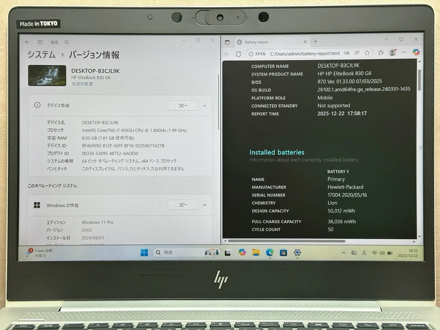 HP EliteBook 830 G6 ノートパソコンです。 【情報】 ブランド:HP(エイチピー) モデル:EliteBook 830 G6 CPU:Core i7 8565U RAM:8GB SSD:256GB 画面サイズ:13型 (1980x1080) OS: Windows 11 Pro 【状態】 ランク:AB 使用感はありますが、全体的にきれいです。 中古品であることをご了承ください。