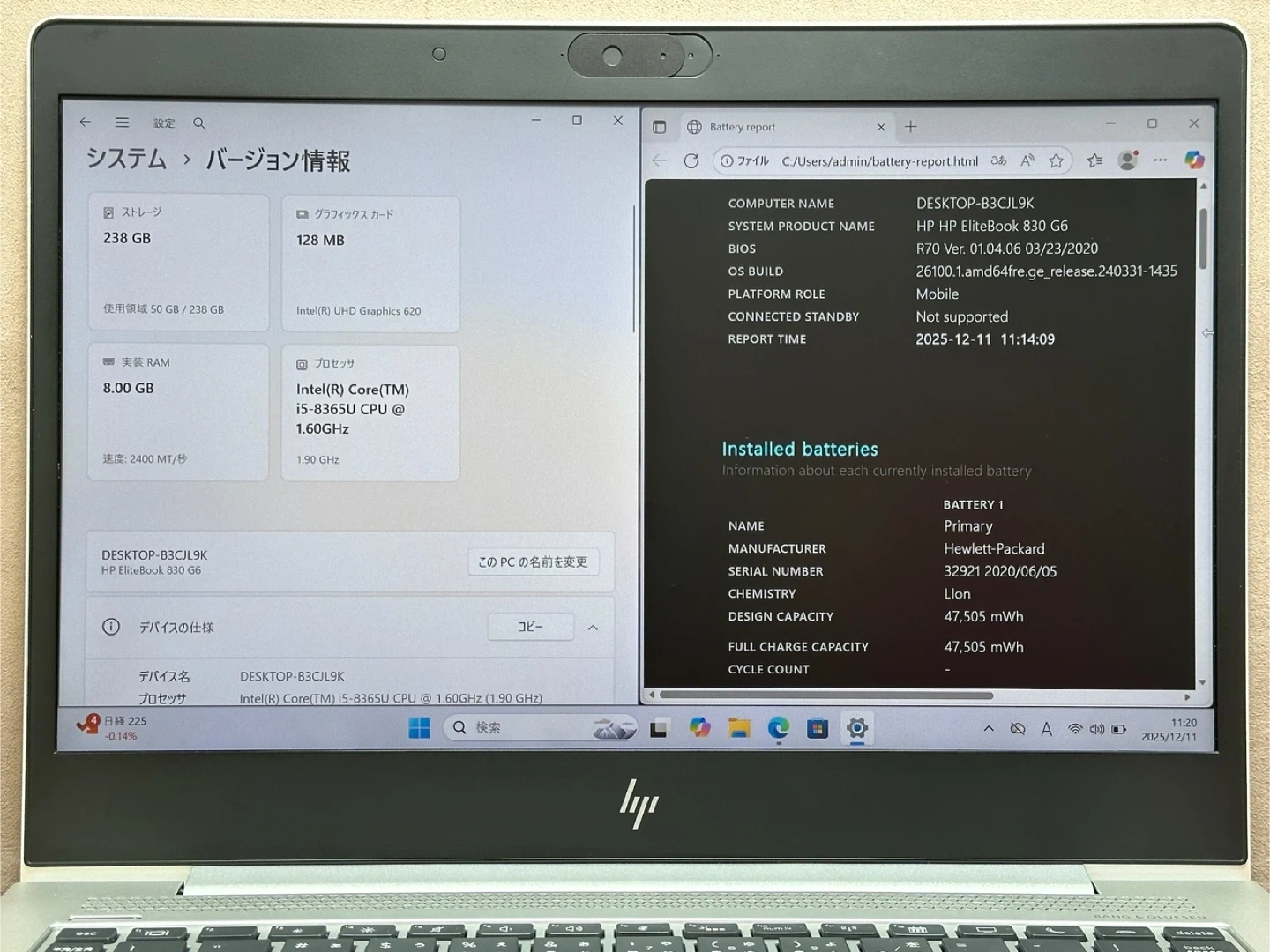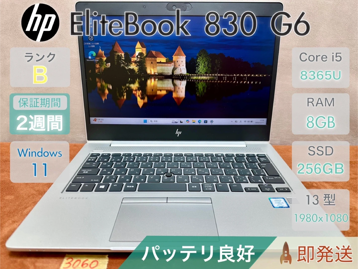 HP EliteBook 830 G6のノートパソコンです。 【情報】 ブランド:HP モデル:EliteBook 830 G6 CPU:Core i5 8365U RAM:8GB SSD:256GB 画面サイズ:13型 解像度:1920x1080 OS:Windows 11 【状態】 ランク:B バッテリー良好 使用感はありますが、全体的にきれいです。 【その他】 保証期間:2週間 中古品であることをご了承ください。