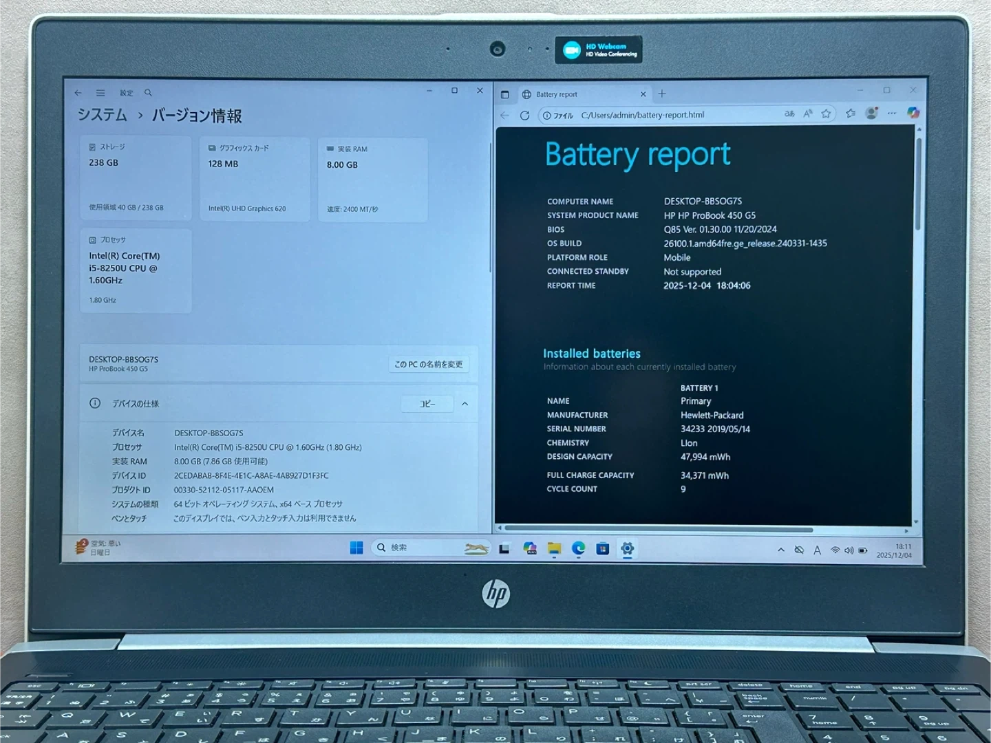 HP ProBook 450 G6のノートパソコンです。 【情報】 ブランド:HP モデル:ProBook 450 G8 CPU:Core i5 8250U RAM:8GB SSD:256GB OS:Windows 11 画面サイズ:15型 (1980x1080) 【状態】 ランク:B 使用感はありますが、動作に問題はありません。 中古品であることをご了承ください。 https://shop.ntd-pc.com ■外部ショップリンク Yahoo!オークション: https://auctions.yahoo.co.jp/seller/Efbd6jvJ3thX2CTyhQp5mQn4oMRTQ?user_type=c Yahoo!フリマ: https://paypayfleamarket.yahoo.co.jp/user/p10934620 メルカリ NTD PC: https://jp.mercari.com/user/profile/413652274?utm_source=ios&utm_medium=share メルカリ Kanto PC: https://jp.mercari.com/user/profile/219002937?utm_medium=share&utm_source=ios ラクマ: https://fril.jp/shop/77458b95ba440393cf2f56ba4226681d #laptop #NTDPC #thinkpad #中古パソコン #ノートパソコン