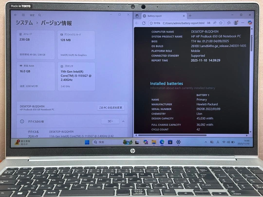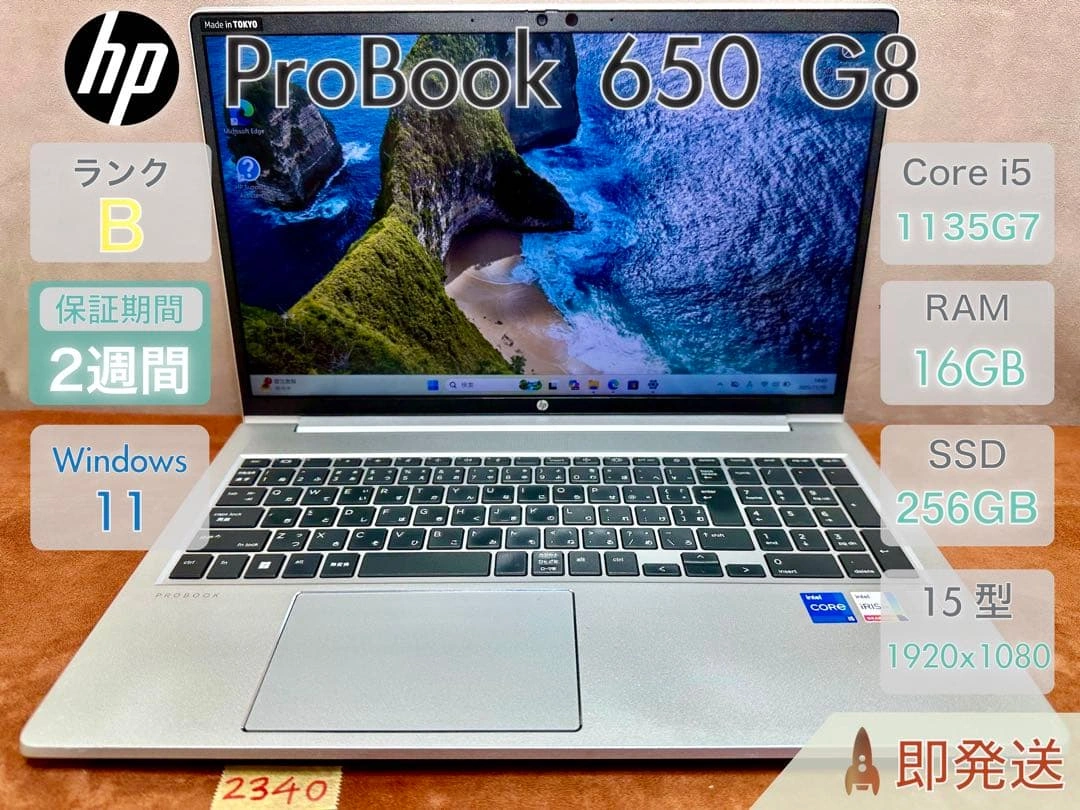 HP ProBook 650 G8です。 ■スペック ・CPU: Core i5-1135G7 2.4GHz, ターボブースト: 4.2GHz ・RAM: 16GB 3200MHz ・統合グラフィックス: Intel Iris Xe Graphics ・ストレージ: 256GB SSD M.2 PCIe ・ディスプレイ: 15.6インチ ・指紋認証 ・顔認証 ・Webカメラ搭載 ・WiFi, Bluetooth搭載 ・解像度: 1920x1080 ・OS: Windows 11 Pro ・Office付 ■状態 ・起動確認済です。 ・設定は全て完了しておりますので、すぐにご使用頂けます。 (中古品ですので、バッテリーの寿命は保証できません。ご理解の上でご購入下さい) ■外装・機能状態 【外装状態】B : 良品 : 小さなキズや擦れあり。動作に問題なし。 【液晶状態】A : 綺麗な状態。ドット抜けはなく、微細なキズがある場合がありますが、目立たず使用に支障はありません。 【機能状態】A : 機能良好。基本動作はすべて正常。軽微な経年劣化: バッテリー消耗程度あり。 ・中古品かつ個人での検品のため、外観の状態につきましては主観的な判断や見落としがある場合がございます。予めご了承ください。 ・状態は写真でご確認ください。 ■付属品 本体、ACアダプタ、電源コード ■保証期間: ・初期不良の場合、到着後2週間以内にご連絡ください。 ・C、D、 Jランクのものは一律保証無し商品となりますのでよくご確認ください。 ・不明点がございましたら、ご購入の前にご質問をお願い致します。 ご検討よろしくお願いいたします。 ■外部ショップリンク Yahoo!オークション: https://auctions.yahoo.co.jp/seller/Efbd6jvJ3thX2CTyhQp5mQn4oMRTQ?user_type=c Yahoo!フリマ: https://paypayfleamarket.yahoo.co.jp/user/p10934620 メルカリ NTD PC: https://jp.mercari.com/user/profile/413652274?utm_source=ios&utm_medium=share メルカリ Kanto PC: https://jp.mercari.com/user/profile/219002937?utm_medium=share&utm_source=ios ラクマ: https://fril.jp/shop/77458b95ba440393cf2f56ba4226681d