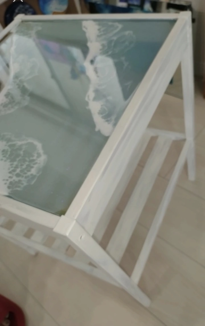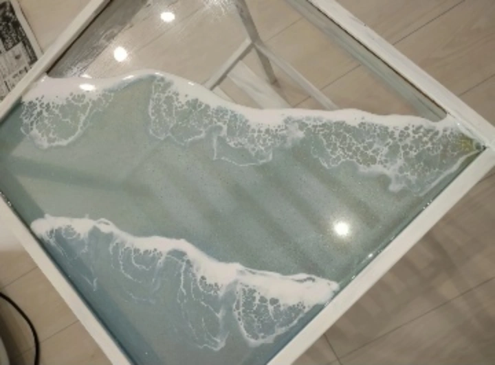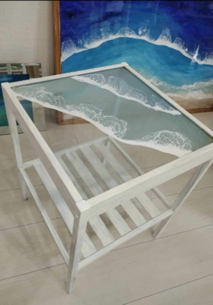 すべて見るIKEAサイドテーブル 白ホワイト 海 波模様 オーシャンレジン作品 収納 デスク インテリアお洒落 ハワイアン