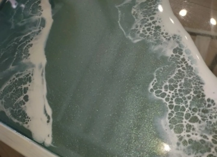 正確なサイズは後ほど計測します。 ハンドメイド作品です。 イケアの竹製テーブルを白くペンキで塗っています。 西海岸、南国リゾートカフェ風です。 細かいラメ、メタリックパウダー(マイカパウダー)が大量に入っており、キラキラ輝いてとても綺麗です。 グラデーションブルーの2層の波です。 躍動感があり、今にも動き出しそうな綺麗な波模様です。 気になる作品があれば、個別にアップで撮影しますのでリクエストお願い致します。 他にもコースター4枚セット等を出品しています。 お気に入りのカラー、お気に入りの波がきっと見つかりますように♪ スマホやモニターの種類により、実際の商品との色合いなど、見え方が若干異なる場合がございますのでご了承ください。 レジンの性質上、小さな埃や気泡が入ったり、凸凹やソリ、ヨレ等がある場合があります。 ハンドメイド作品であり、また安価にて出品致しておりますので、ご理解頂きご購入いただきますようお願いいたします。 波 海模様 青 水色 ブルーグラデーション エメラルドグリーン ティファニーブルー ターコイズブルー ウルトラマリン 宮古ブルー ハワイ グラデーション