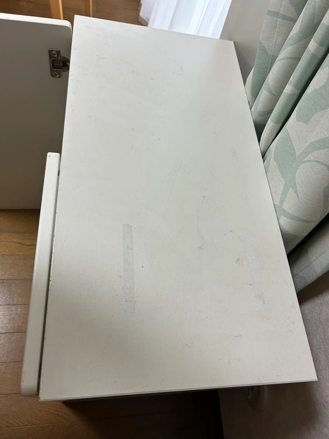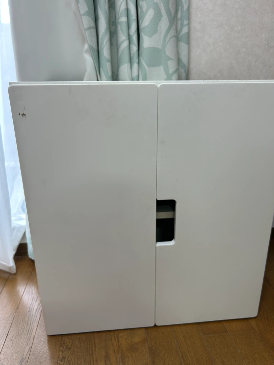 10年近く前に購入、日常使用していました。 近年は倉庫保管しており、使用しなくなりました。 汚れや傷、テープ残り等ございます。 また扉の蝶番部分が緩くなっているようで、床に引っかかる状態です。 (蝶番を絞めていただけば直るかもしれません) 中は2段収納になっています。 約26✖️56✖️高さ28cm (本体サイズ共、素人採寸のため誤差ご容赦くださいませ) 大きなお品のため、受け渡し場所の変更は難しいので、近くまで来ていただける方よろしくお願いいたします。