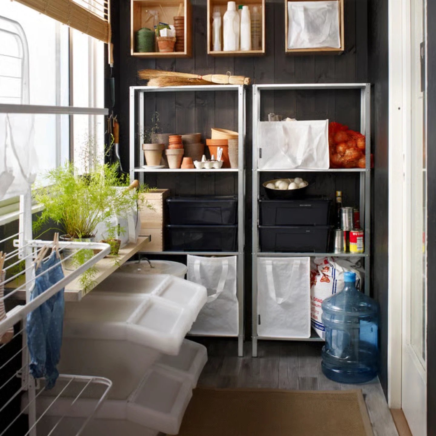 【ブランド】IKEA(イケア) 【カラー】シルバー 【サイズ】 幅: 60 cm 奥行き: 27 cm 高さ: 140 cm 棚板1枚あたりの最大荷重: 25 kg 【参考価格】2,799円 バルコニーに植木鉢、バスルームにシャンプー、キッチンにハーブを置くのに最適です。丈夫で軽量、濡れた場所でも使用できます。こんな大きなシェルフユニットだって平らなパッケージです! 半年ほど使用しました。 組み立て済みです。 お探しの方にお譲りします。