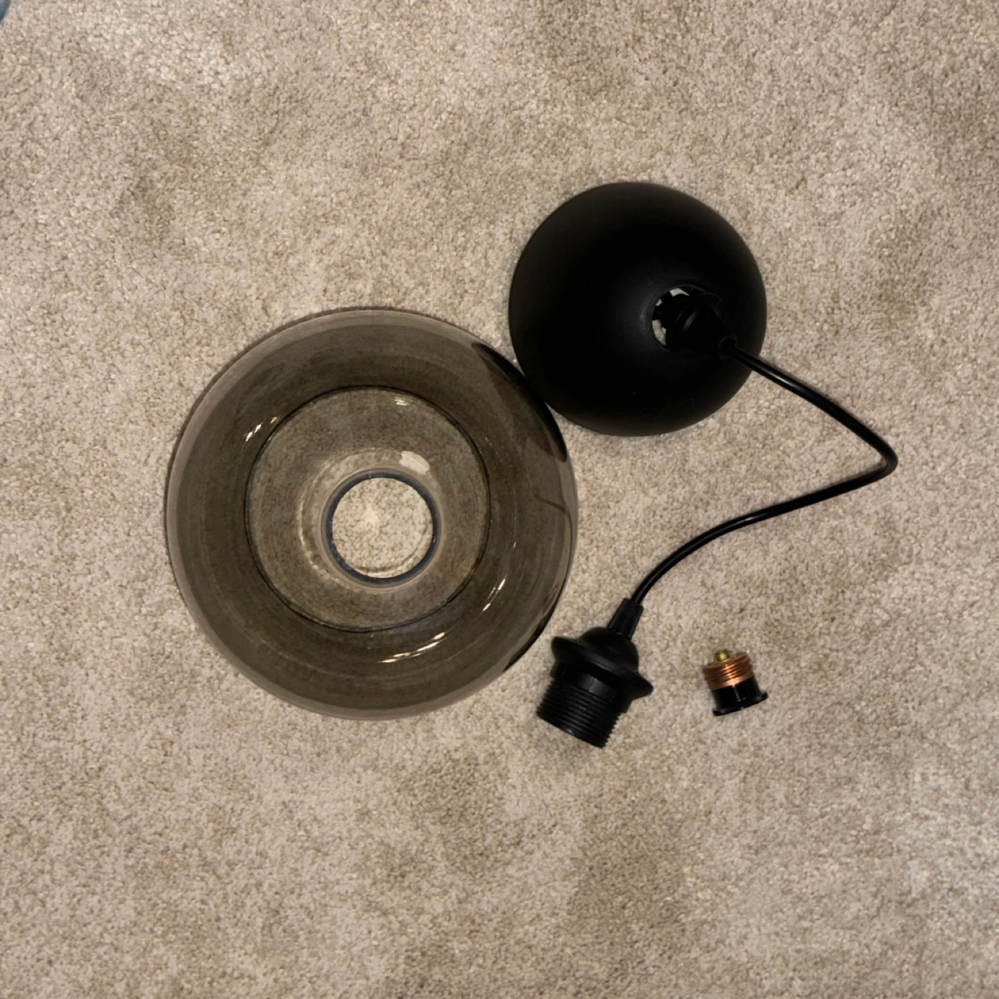 【ブランド】IKEA(イケア) 【カラー】スモーク 【サイズ】 高さ:25 cm 直径:30 cm コードの長さ:1.4 m 最大:22 W 【参考価格】6,997円 時代に左右されないスタイリッシュなペンダントランプ。柔らかいフォルムのシェードはスモークガラスの吹きガラス製です。お好みの電球を取り付けて、ダイニングテーブルやアイランドキッチンの上につり下げましょう。数個を1列に並べて設置するのもおすすめです。 ランプシェードは熟練した職人の手による吹きガラス製。それぞれ仕上がりが微妙に異なります。 2〜3ヶ月使用しました。 お探しの方にお譲りします。