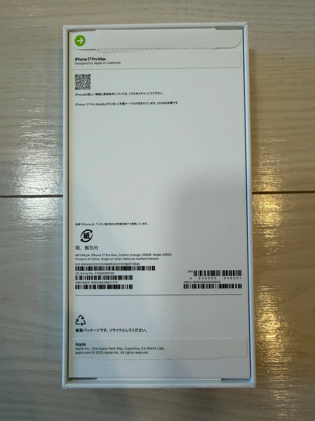 アップル 13インチ iPad Pro (M5) Wi-Fi 512GB 箱のみ