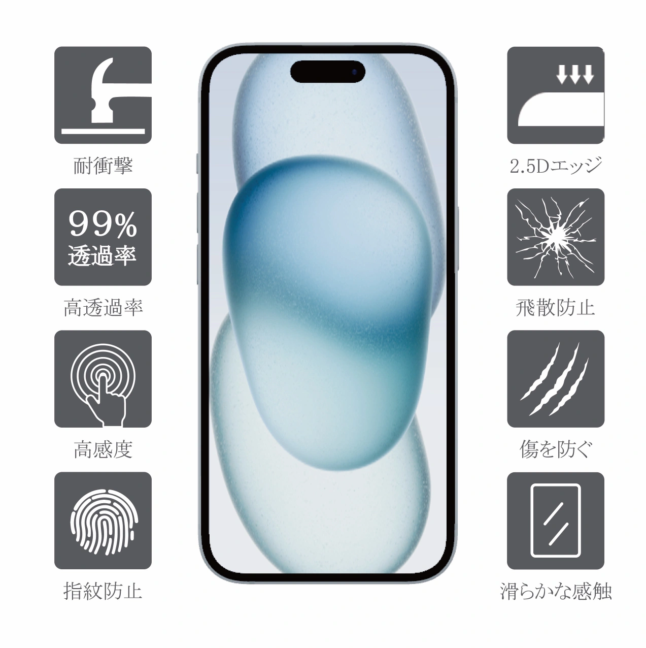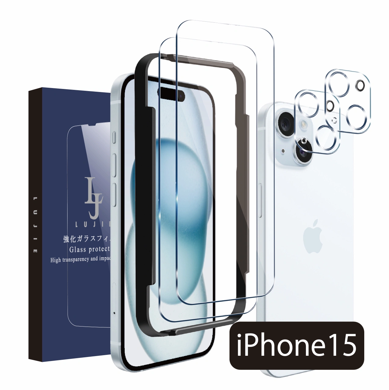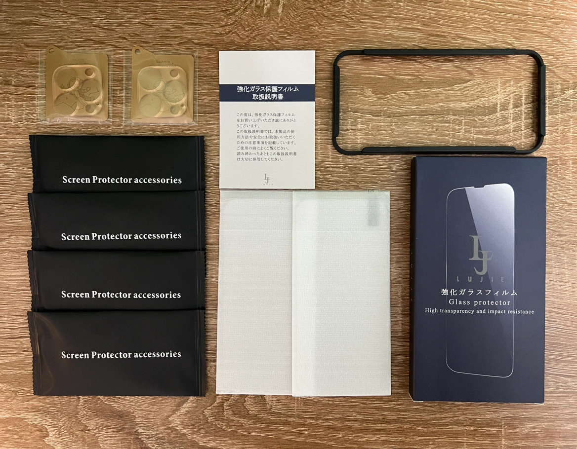 iPhone15 iPhone15pro iPhone15plus iPhone15promax ガラスフィルム 内容物 強化ガラスフィルム×2 レンズガラスフィルム×2 クロス×4 アルコールシート×4 ほこり取りシール×4 ガイド枠×1 説明書×1 ガイド枠付き:ガイド枠を利用することで、本体とフィルムがズレることなく、だれでも簡単にフィルムを貼ることが可能です。 高透過率:極薄型フィルムなので、透過率は非常に高く、液晶画面の美しさを存分にお楽しみいただけます。フィルムを貼っていても画面の精細さを損ないません。画面上の操作も違和感なくスムーズに行えます。 ラウンドエッジ加工:しっかりとしたラウンドエッジ加工が施されており、引っかかることなく、一体感が生み出されます。
