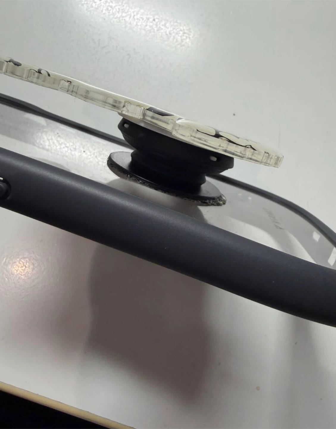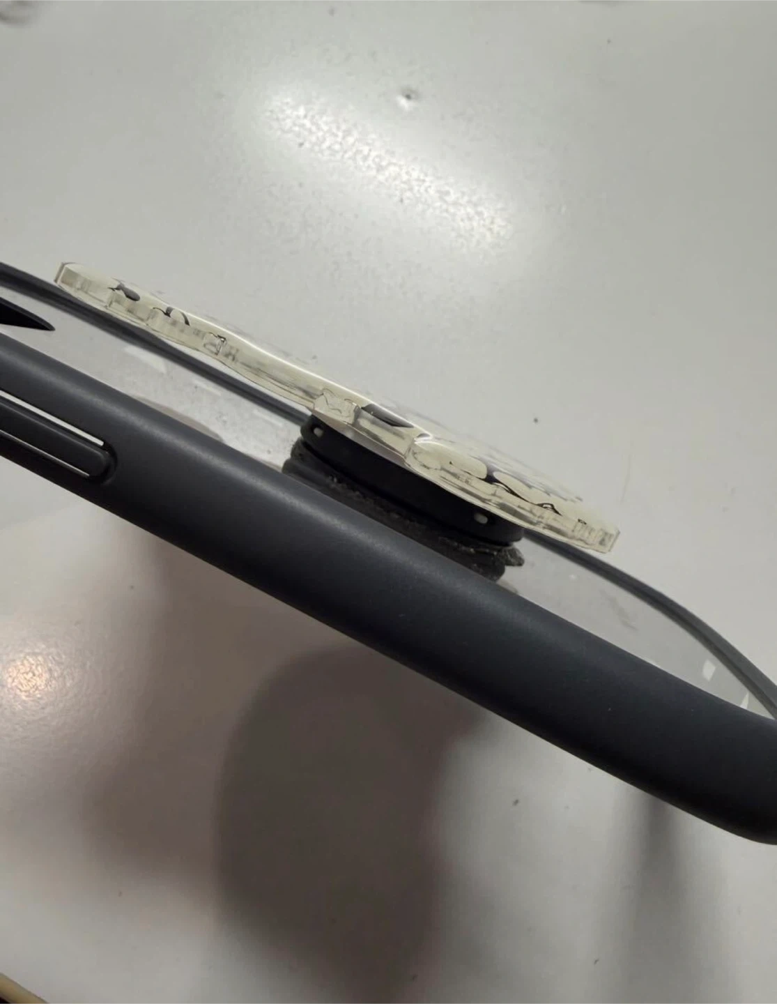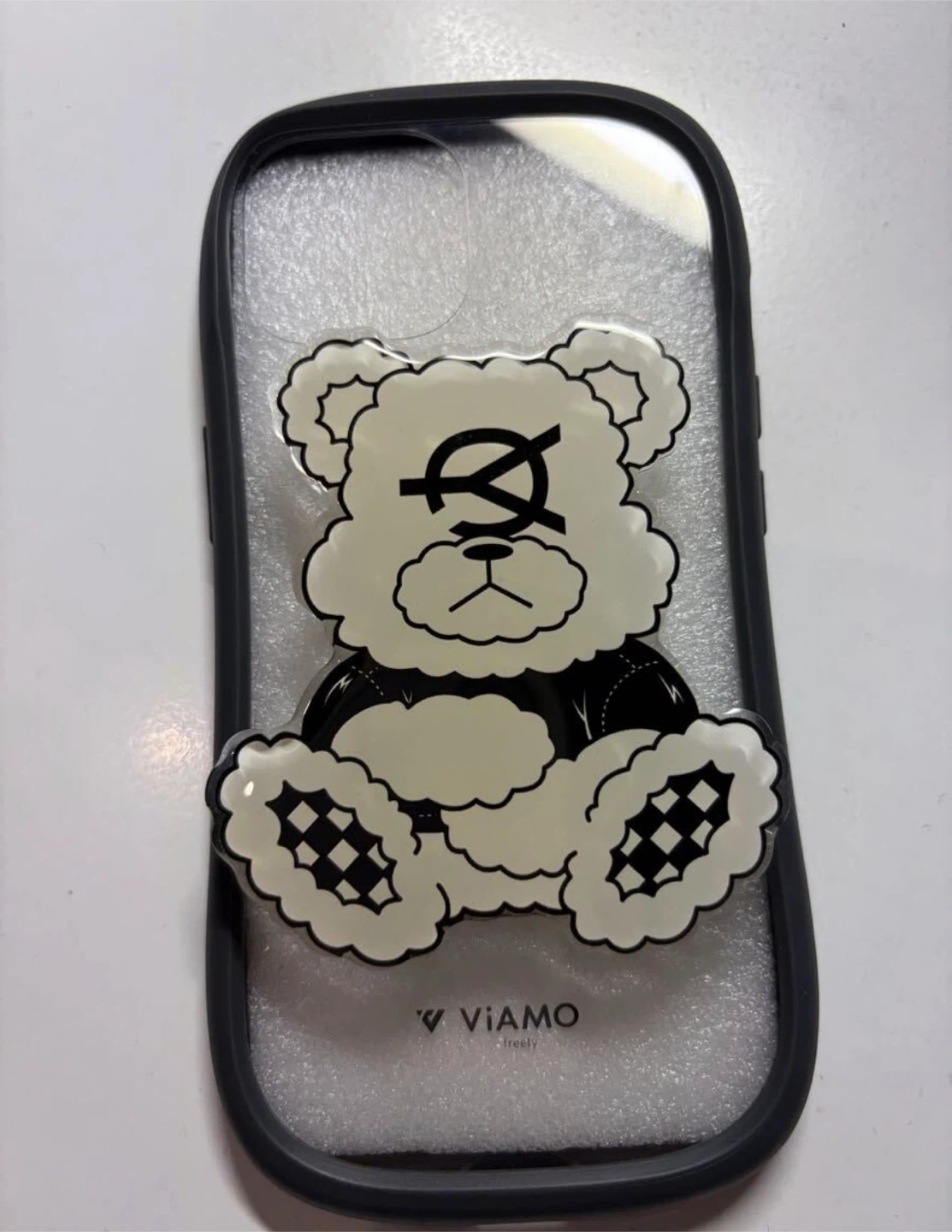 ヴィアモのスマホケースです。 ・色:クリア、黒 ・デザイン:OYクマのキャラクターグリップを強力に付けてます ・状態:使用感無し 中古品であることご了承ください。