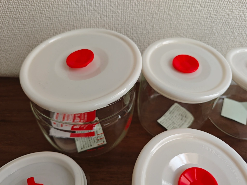 (No.G133) [掲載品名] iwaki 密閉パック×5 ガラス製 未使用 おまけあり [スペック等] 目安サイズ(直径、高さ)… 約10cm×7cm(2個) 約10cm×10cm(2個) 約12.5cm×10cm(1個) おまけ…予備のフタ(直径10cm)、フック [状態] 未使用 長期保管品である点はご了承ください [梱包] なし [受け渡し方法、場所] 直接、武蔵小杉駅周辺 大量硬貨でのお支払いに関しては必ず事前にご相談ください 上記以外の場所での取引に関しては個別にご相談ください [その他] 取引全般に関してはプロフィールに記載しています ご不明な点はお問い合わせください Ask me for English translation in the message.
