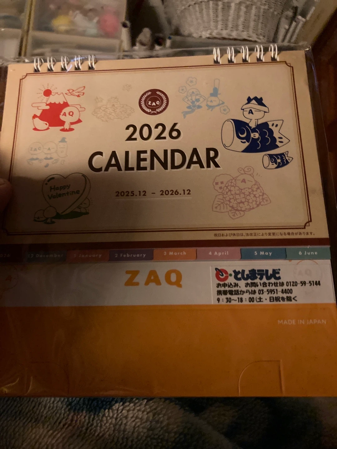 J:COMのキャラクター「ざっくぅ」の2026年卓上カレンダーです。 2025年12月から2026年12月までの期間をカバーしています。 未開封の新品で、可愛らしいイラストが特徴です。 【ブランド】J:COM (ざっくぅ) 【カテゴリ】カレンダ ー 【商品の状態】未使用 【カラー】マルチカラー 【サイズ】画像に写る定規から、横幅は約18cm程度と推測されます。 よろしくお願いいたします。